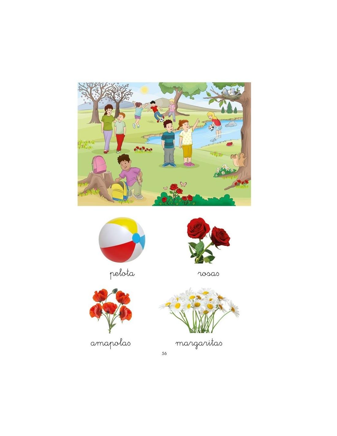 Libro de lectura basado en la memoria perceptiva, constituyendo un instrumento de estimulación a la lectura de nuestros niños y niñas, en el que las imágenes hacen referencia a su entorno inmediato. Cada una de las palabras va acompañada del dibujo o foto real correspondiente.