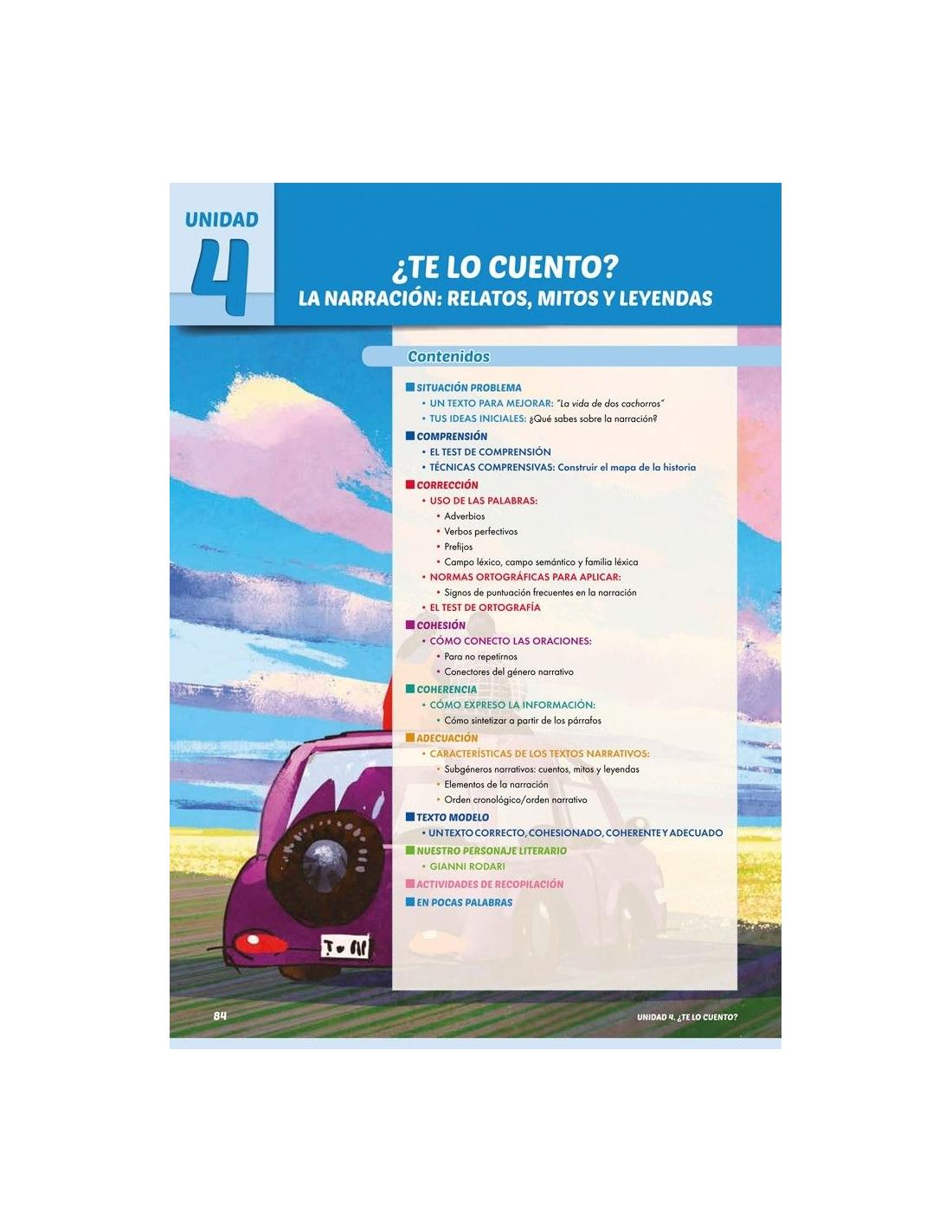 - Características de los textos narrativos; subgéneros (cuentos, mitos y leyendas), elementos de la narración y orden cronológico/narrativo.