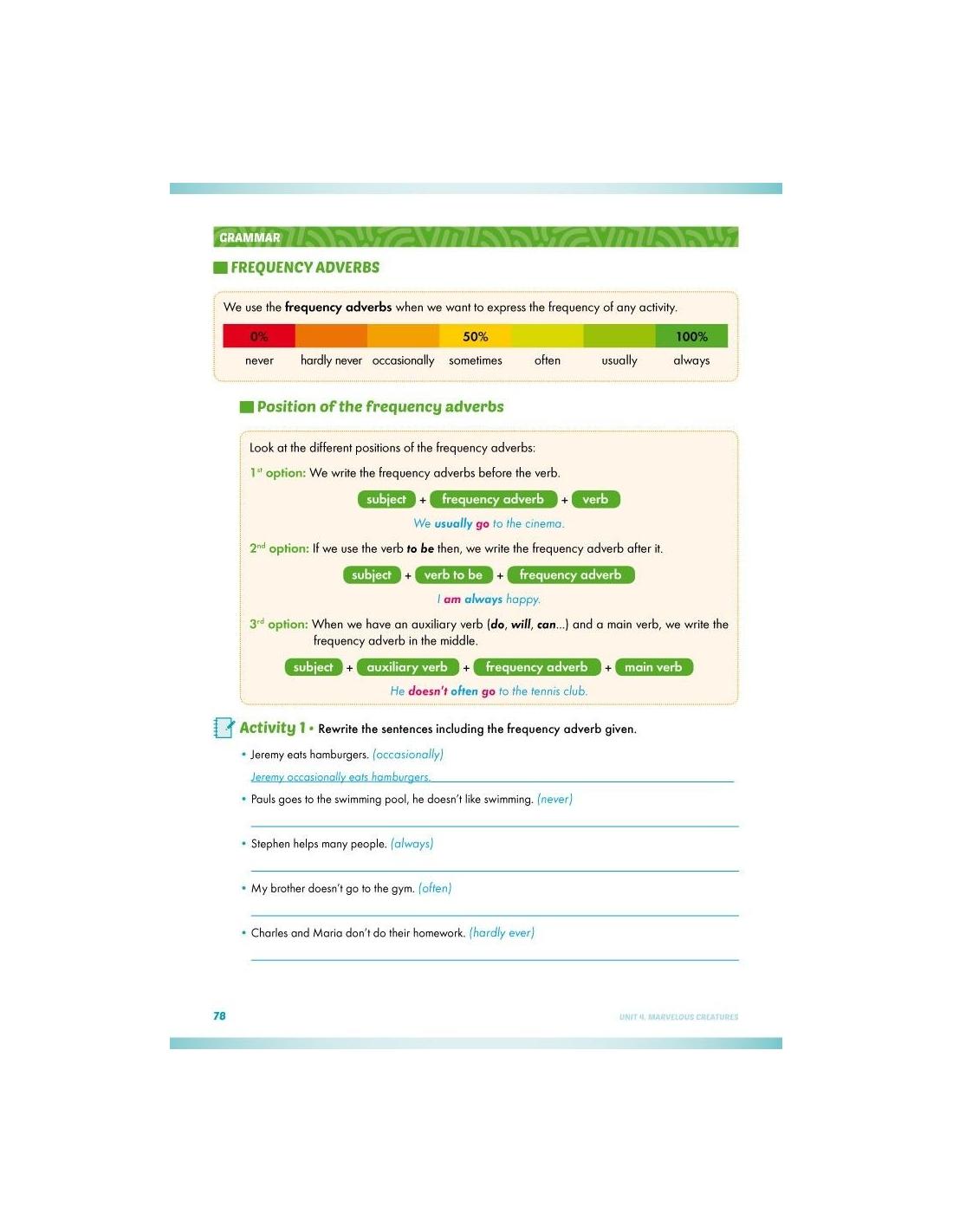 A lo largo de cada unidad se trabajan las siguientes destrezas implicadas en el desarrollo del idioma: Reading, Speaking and Writing junto con los elementos sintáctico-discursivos y los valores que forman parte del proceso de aprendizaje, así como del desarrollo integral de la persona.