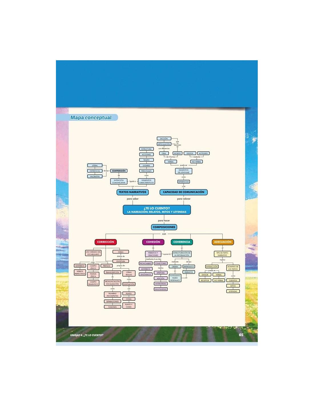 • Características de los textos narrativos; subgéneros (cuentos, mitos y leyendas), elementos de la narración, orden cronológico/narrativo, etc.