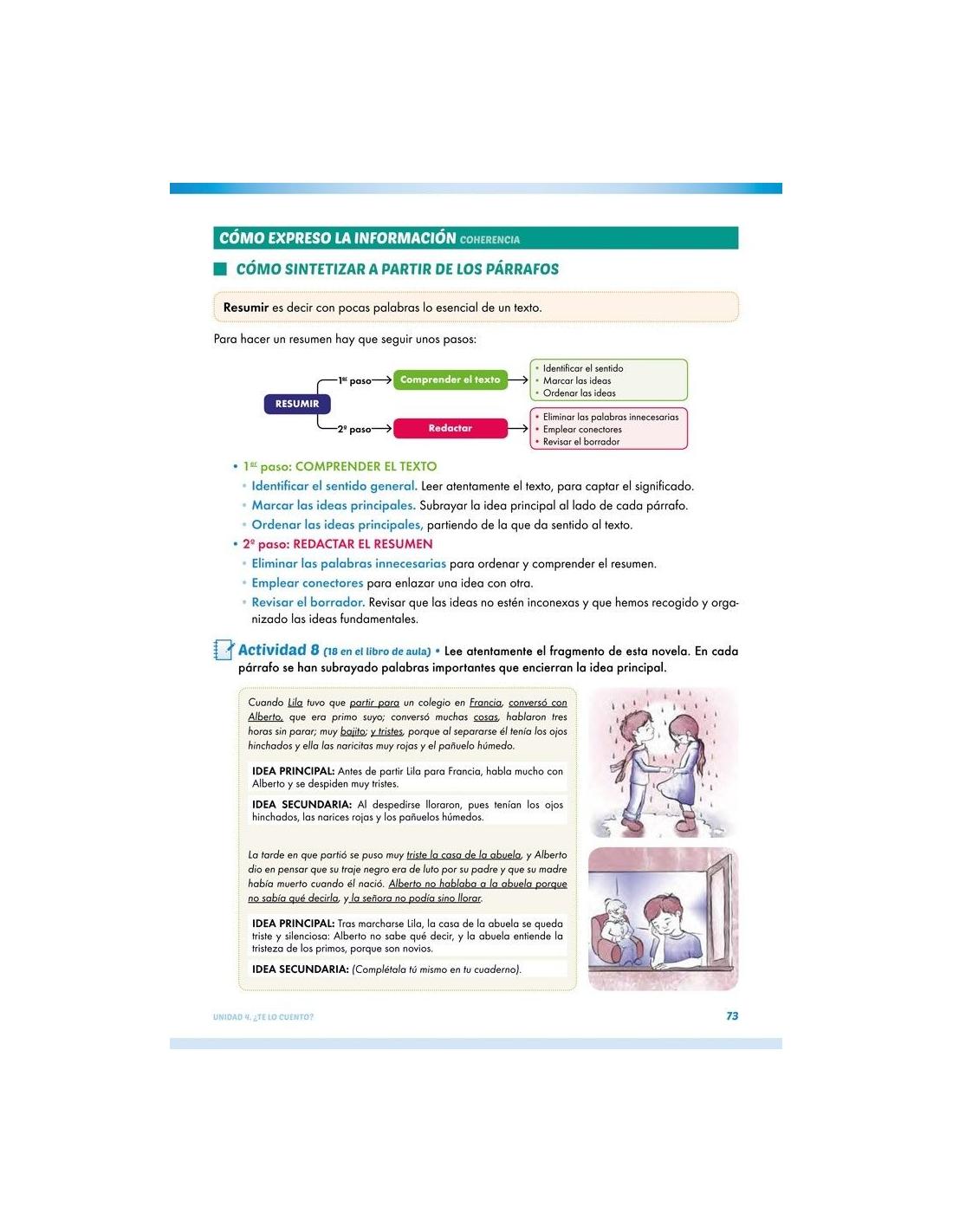 • Expresión de la información sintetizando a partir de párrafos.