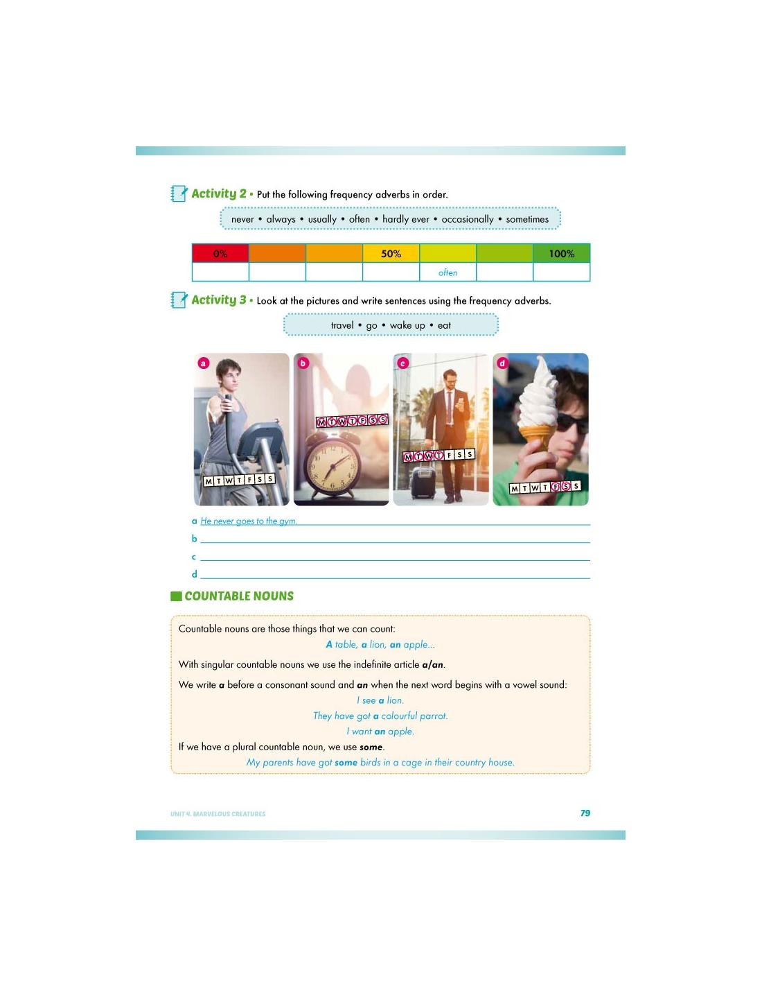 A lo largo de cada unidad se trabajan las siguientes destrezas implicadas en el desarrollo del idioma: Reading, Speaking and Writing junto con los elementos sintáctico-discursivos y los valores que forman parte del proceso de aprendizaje, así como del desarrollo integral de la persona.