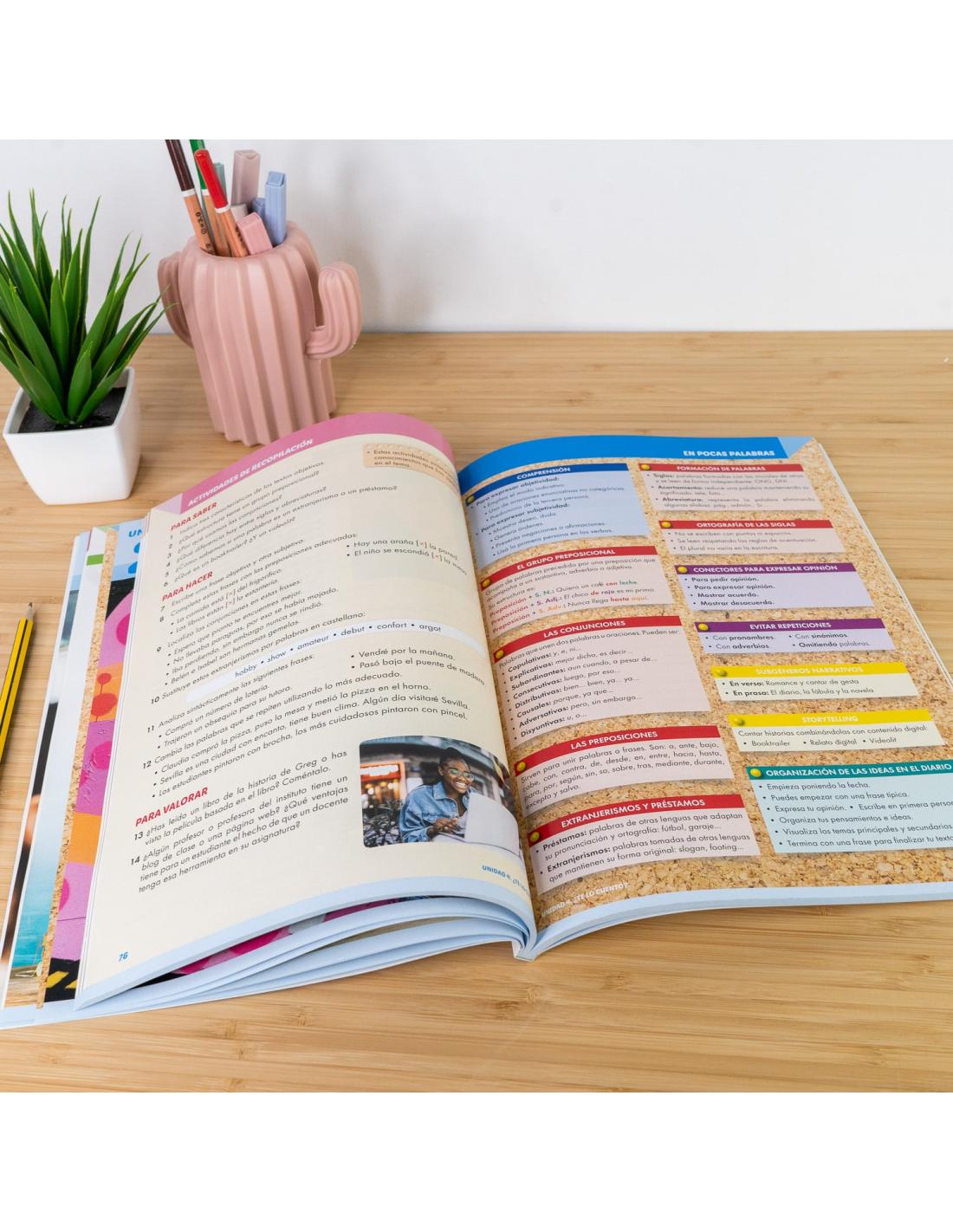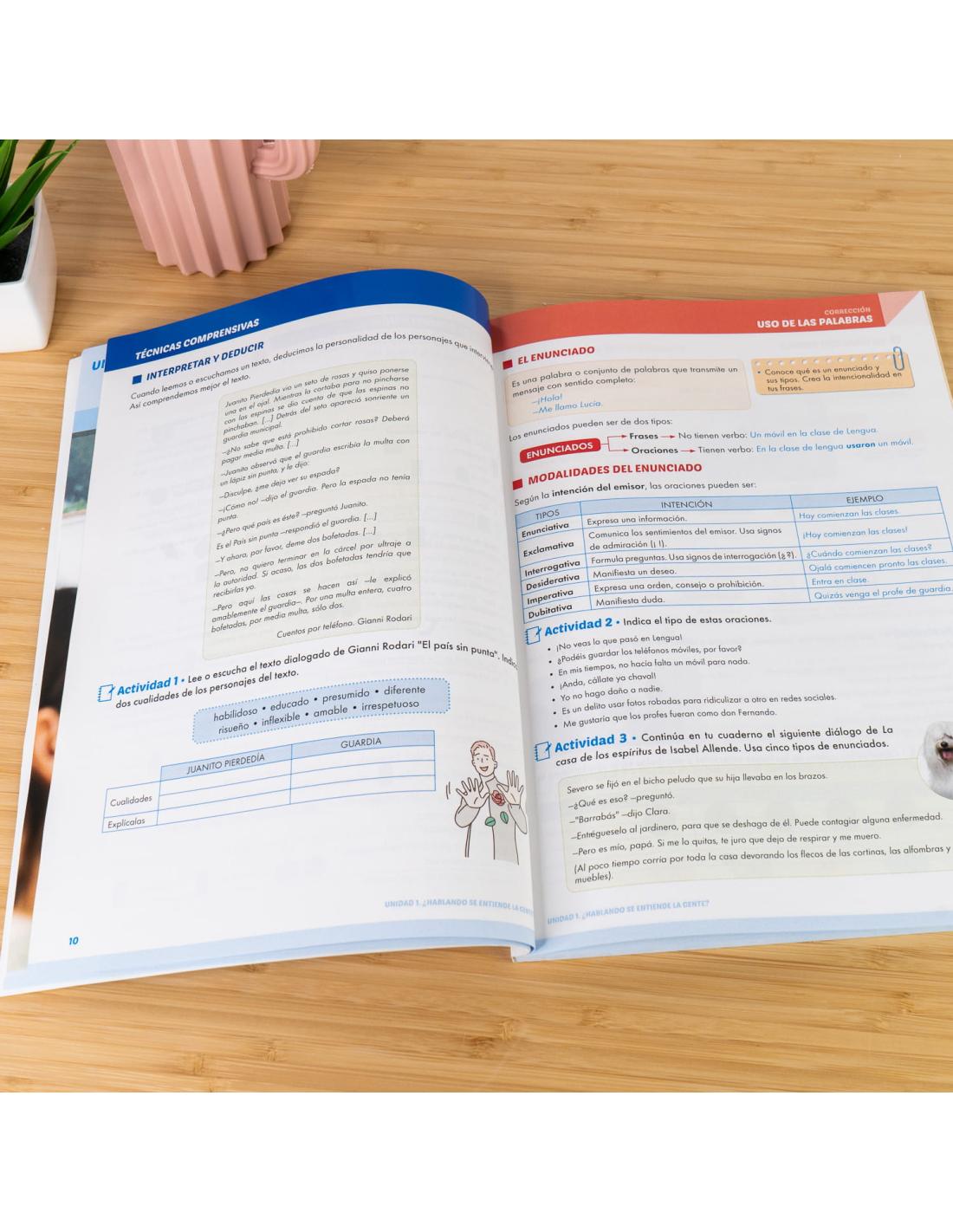 Cada unidad parte de situaciones de aprendizaje reales, como la mejora de textos imperfectos, y guía al alumnado en el desarrollo de habilidades esenciales de comunicación. Además, trabaja de manera integrada los conceptos clave: corrección, cohesión, coherencia y adecuación, con actividades que facilitan un aprendizaje profundo y significativo.