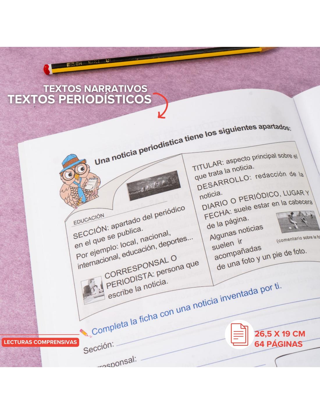 Lecturas Comprensivas 15: Nuestra colección más recomendada por los colegios incluye una gran variedad de ejercicios con actividades divertidas, juegos y dibujos. Los ejercicios tienen una dificultad progresiva y están diseñados para trabajar la lectura y comprensión de textos de hasta 550 palabras. Los niños aprenderán a producir textos narrativos y a conocer la estructura de la noticia periodística. Además, mejorarán su vocabulario con palabras simples y compuestas, campos semánticos y prefijos, así como su ortografía (uso de la ll, palabras homófonas) y gramática (determinantes demostrativos, posesivos, numerales; adverbios).