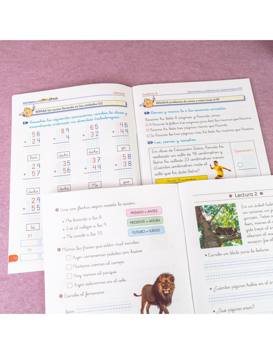 - Cálculo matemático: Sumas y restas llevando, trabajando el razonamiento lógico y la precisión.