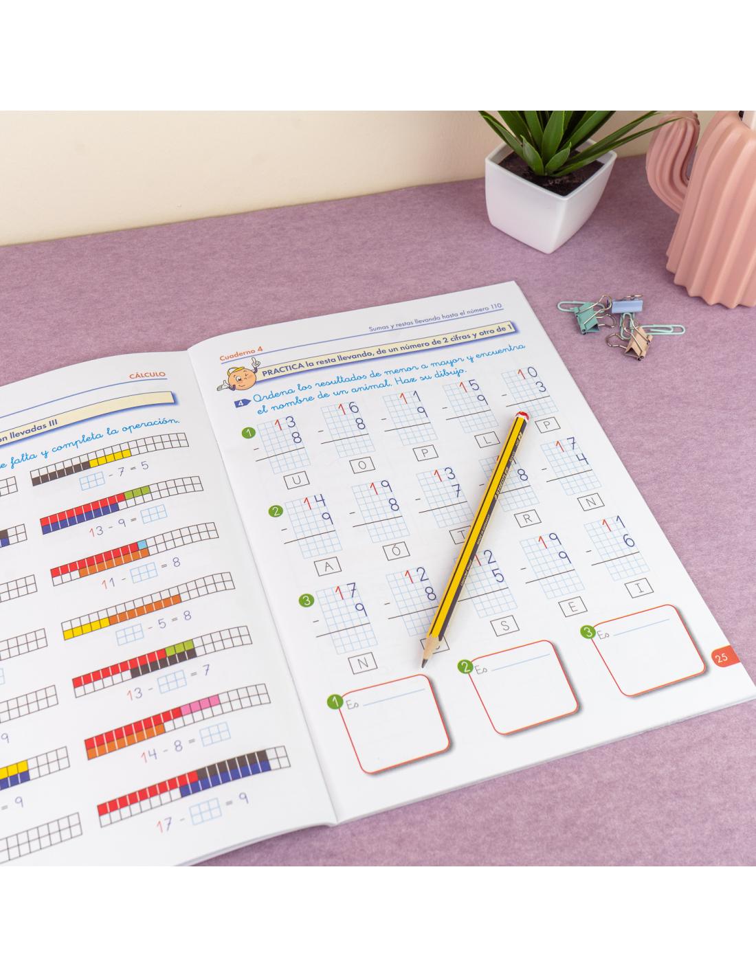 - Cuaderno de Matemáticas Comprensivas Cálculo 4: Perfecto para practicar sumas y restas llevando hasta el número 199, este cuaderno ayuda a los niños a afianzar las operaciones básicas, desarrollar su razonamiento lógico y mejorar su confianza al enfrentarse a cálculos más complejos.