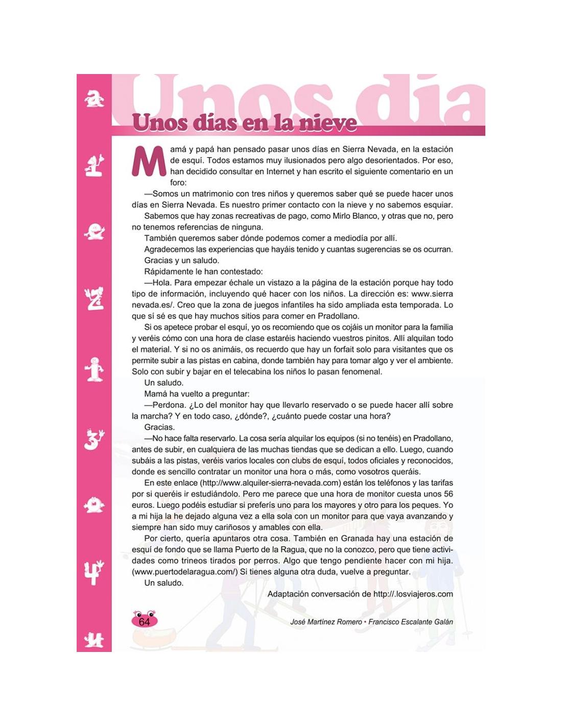 - Lecturas sobre temáticas contextualizadas: “los olivos del abuelo”, “unos días en la nieve”, “el insectario”, etc.