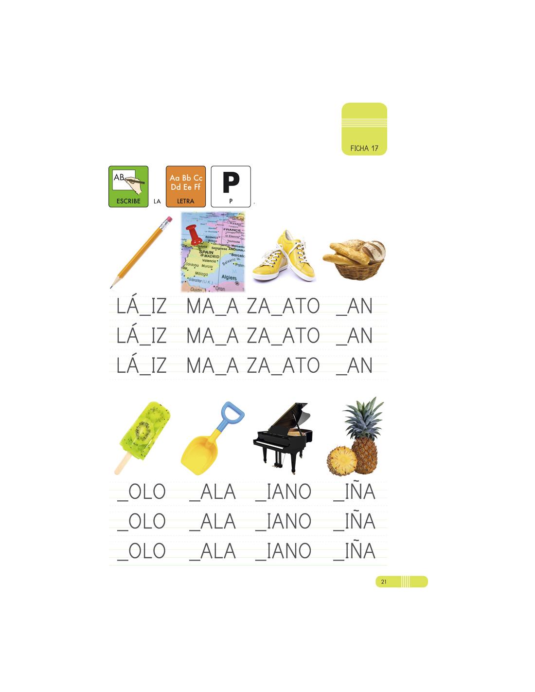• Las fichas tienen como criterio principal la realización del trazado: asociando la grafía con la forma y significado de la palabra.