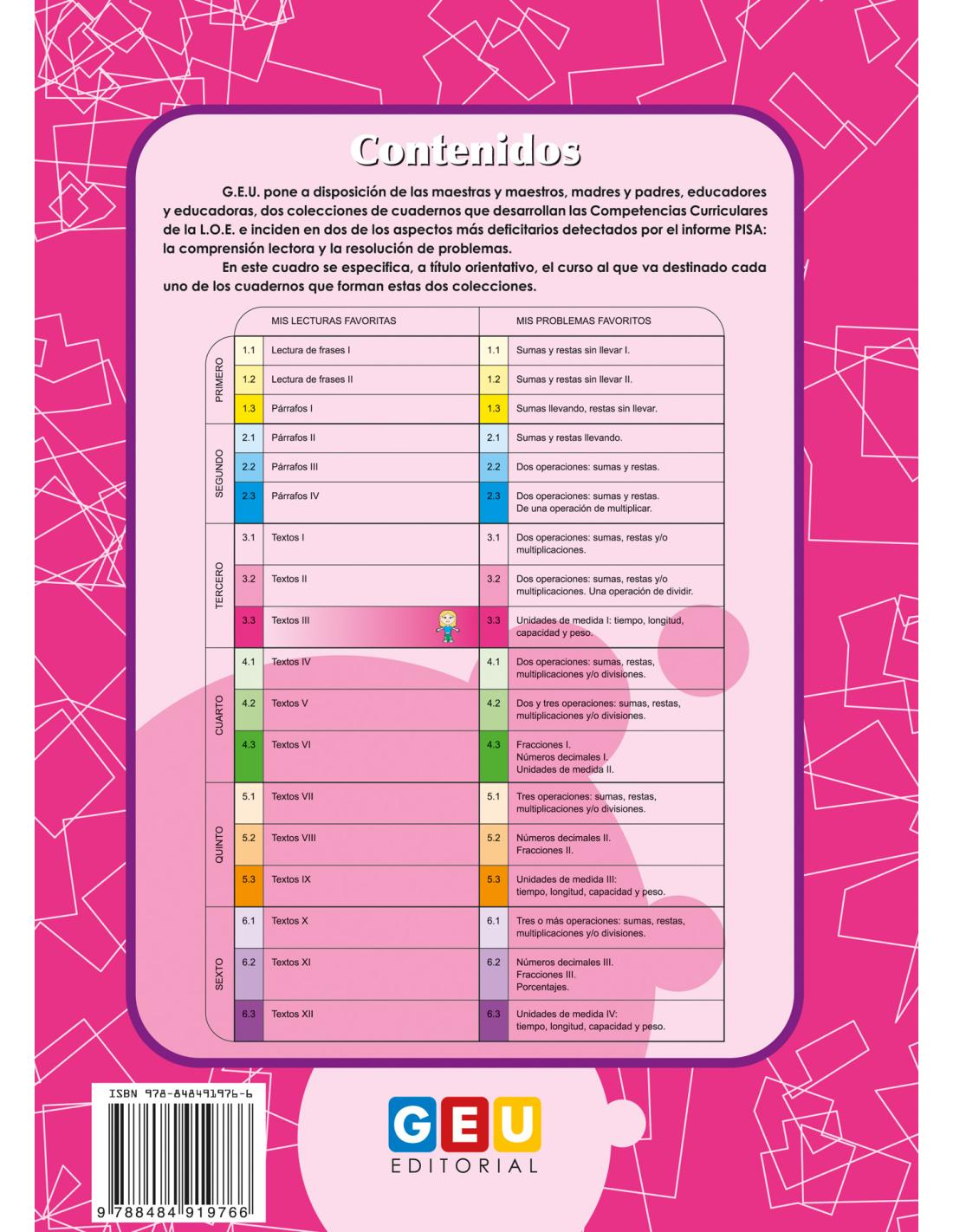 Mis lecturas favoritas 3.3 forma parte de una colección compuesta por 18 cuadernos específicamente diseñados para desarrollar las competencias que les ayudan a comprender lo que leen y así les permite comunicarse de una manera más clara y eficiente.
