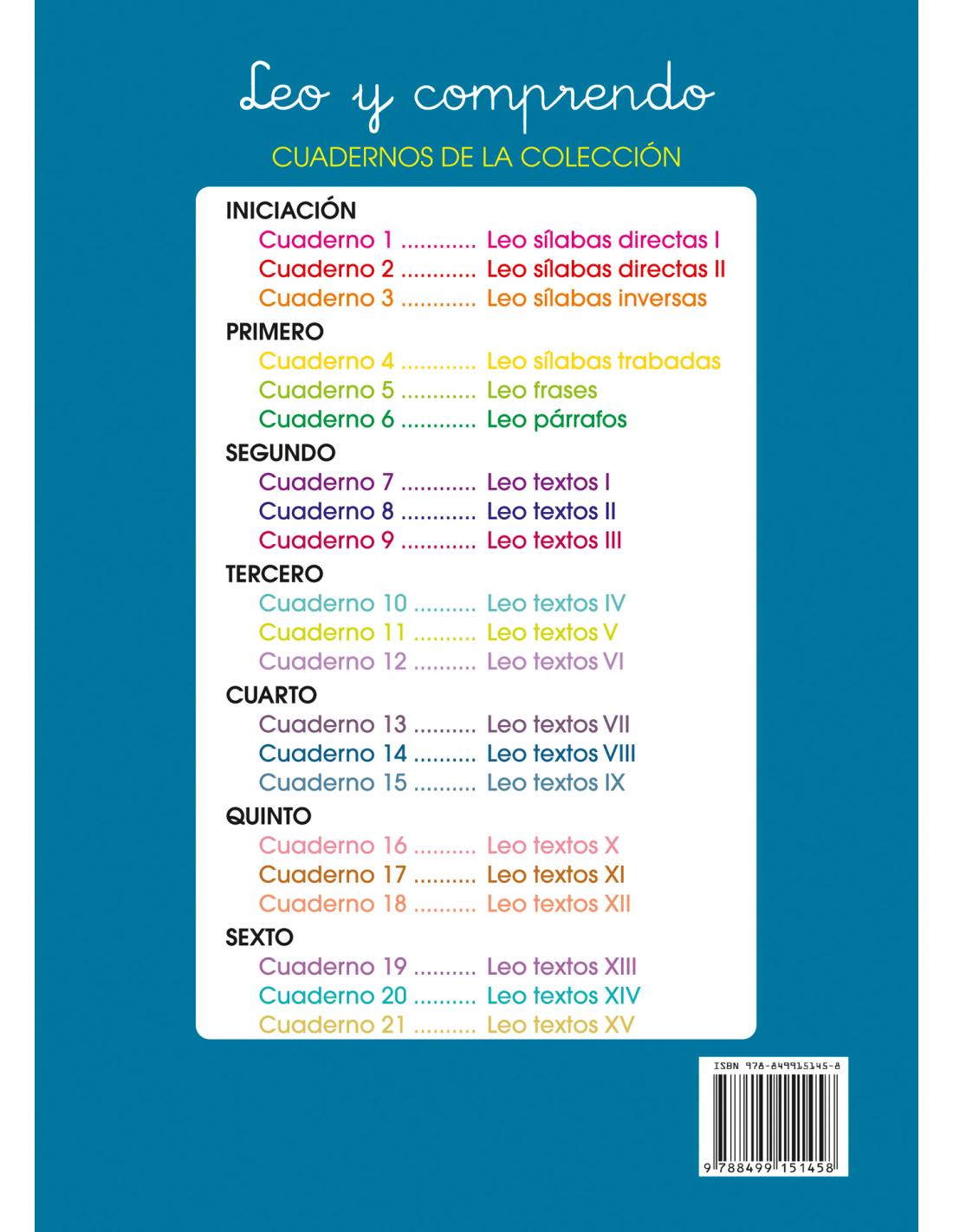 Lecturas comprensivas 14 - Leo textos VIII ofrece un método creado por docentes en activo y ampliamente avalado por miles de alumnos a lo largo de los años que garantiza, con su trabajo tanto en casa como en el aula, una mejora de la comprensión lectora y de otros aspectos de la lengua (ortografía, gramática, vocabulario y composición escrita).
