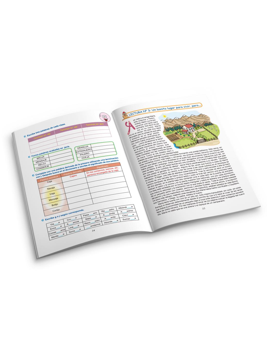 Las actividades de los cuadernos se presentan como las convencionales de lectura de textos y preguntas sobre la lectura después, como otros más amenos para el alumno como son divertidos crucigramas, sopas de letras, relacionar conceptos, unir con flechas, completar los huecos de un texto…