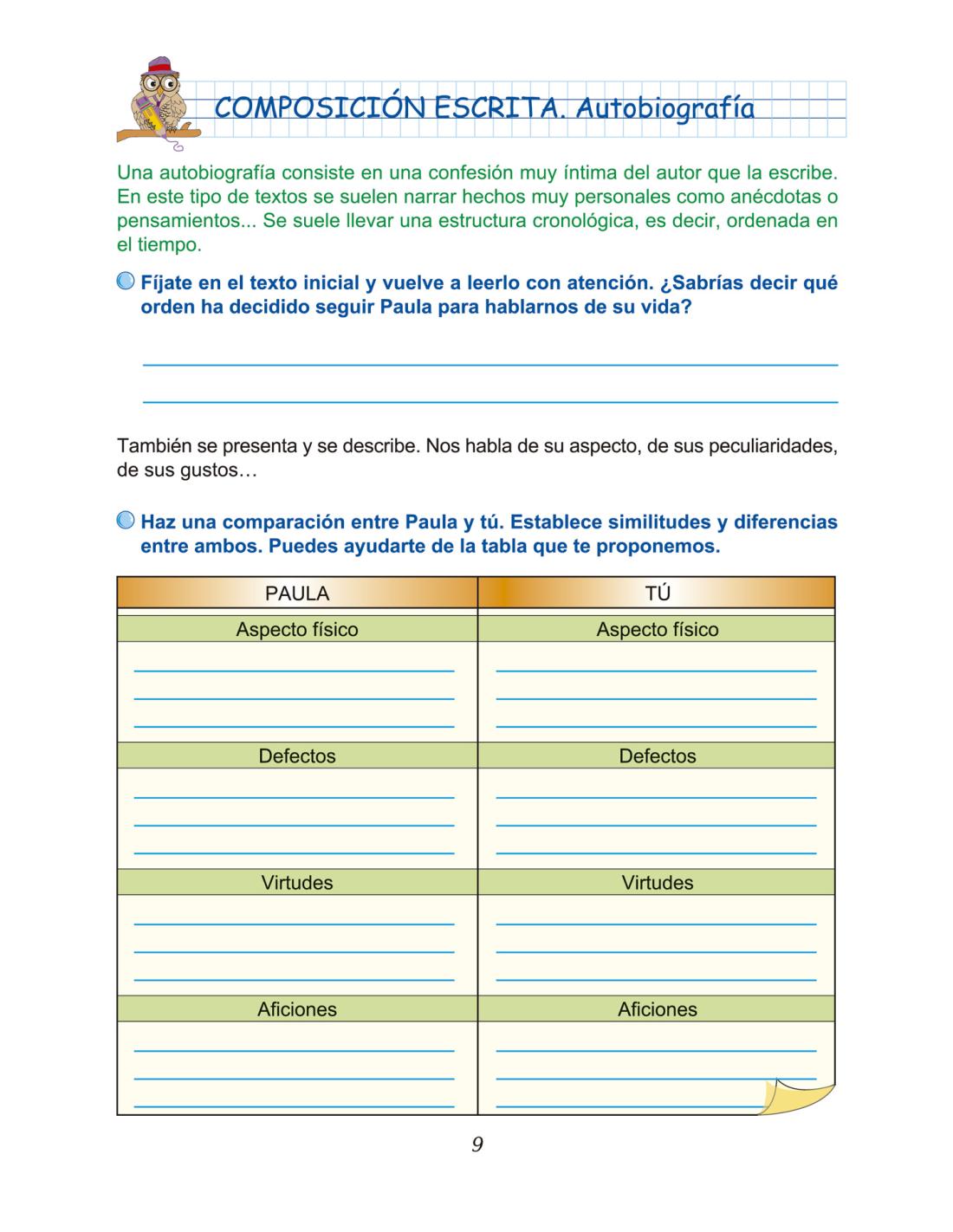 • La producción y comprensión de diferentes tipos de textos: autobiográficos, descriptivos, instructivos, formativos e históricos.