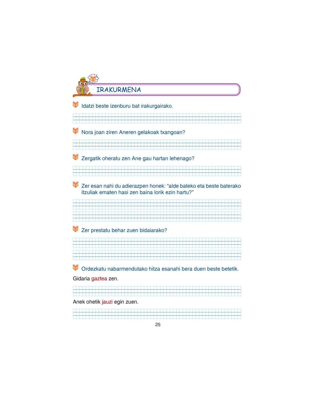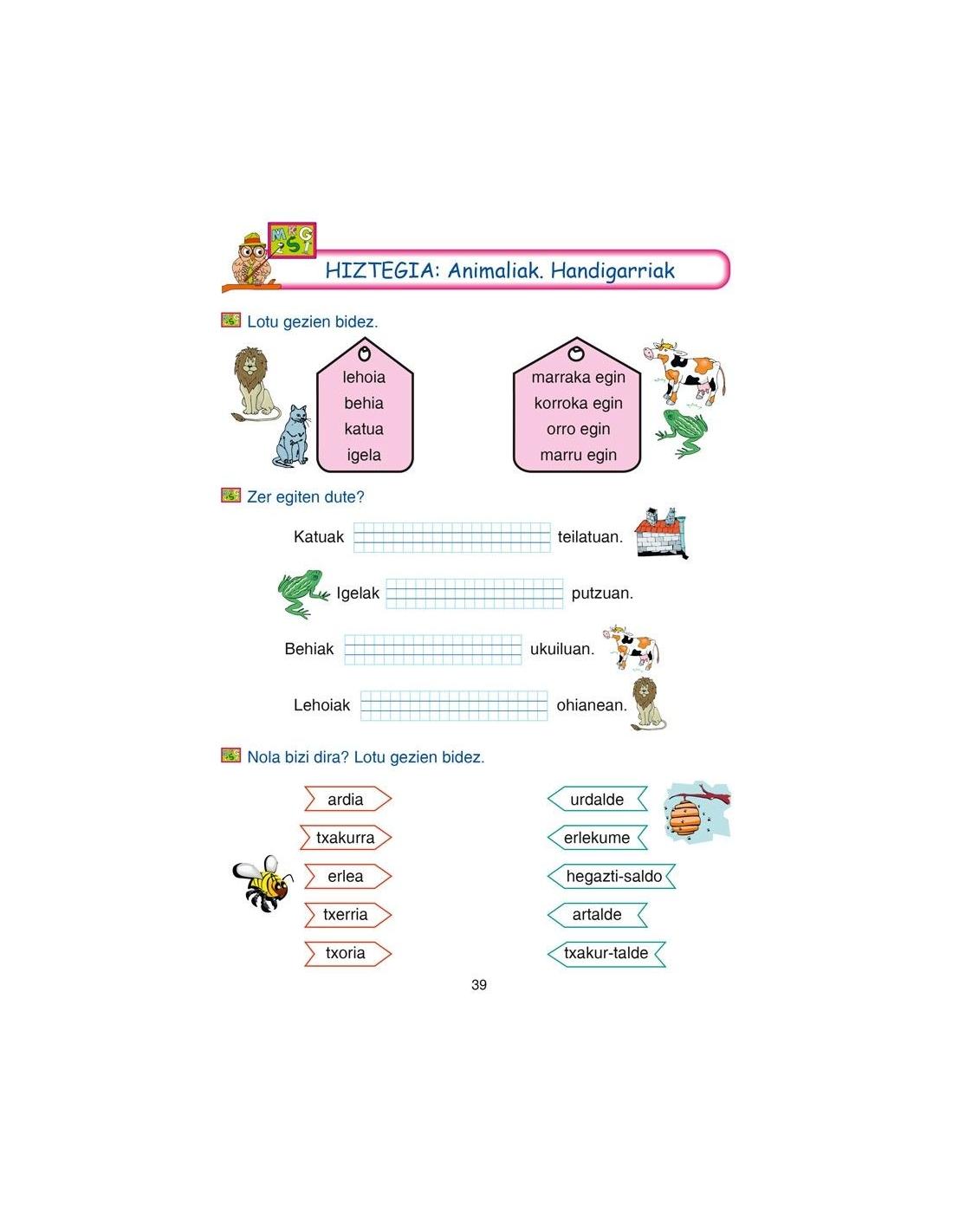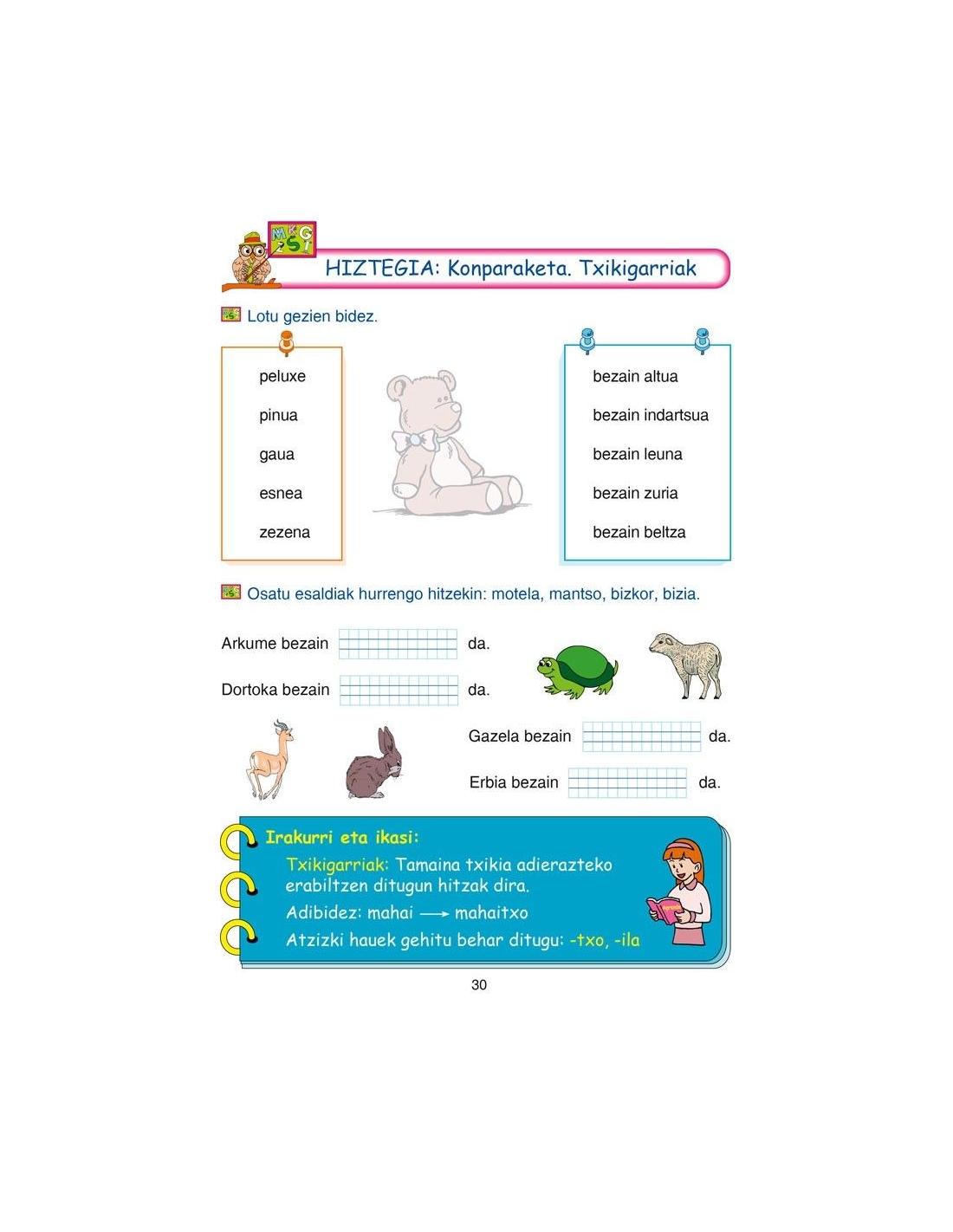 •Animaliak eta gauzak deskribatzeko testuak sortzea, istorioen ordena kronologikoa, hasitako istorioak amaitzea eta gutun osoak idaztea.