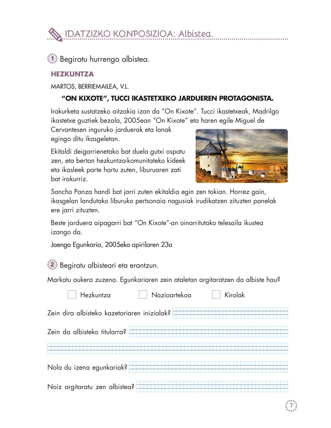 • 550 hitzen arteko irakurketak, testuak hobeto irakurri eta ulertzeko.