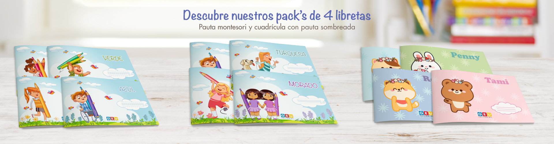 Pack de libretas en pauta Montessori, con pauta sombreada 6 mm
