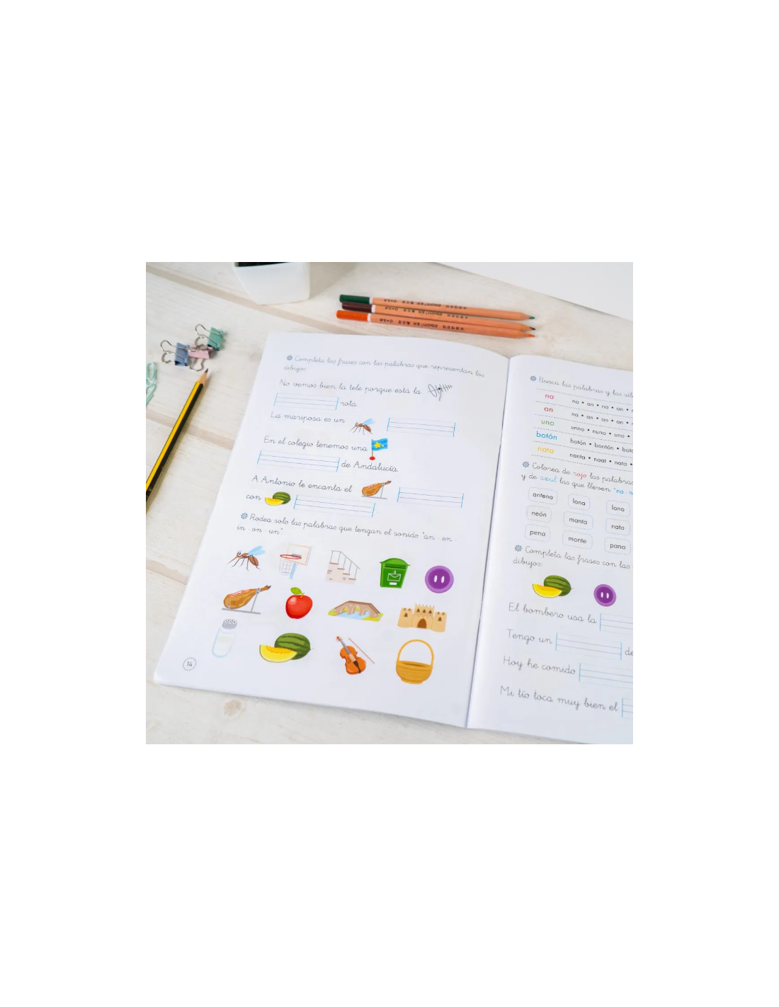 ¡Enriquece el vocabulario y mejora la escritura de tu pequeño con actividades específicas! Diseñado para introducir nuevas palabras y perfeccionar la formación de letras y la construcción de palabras.