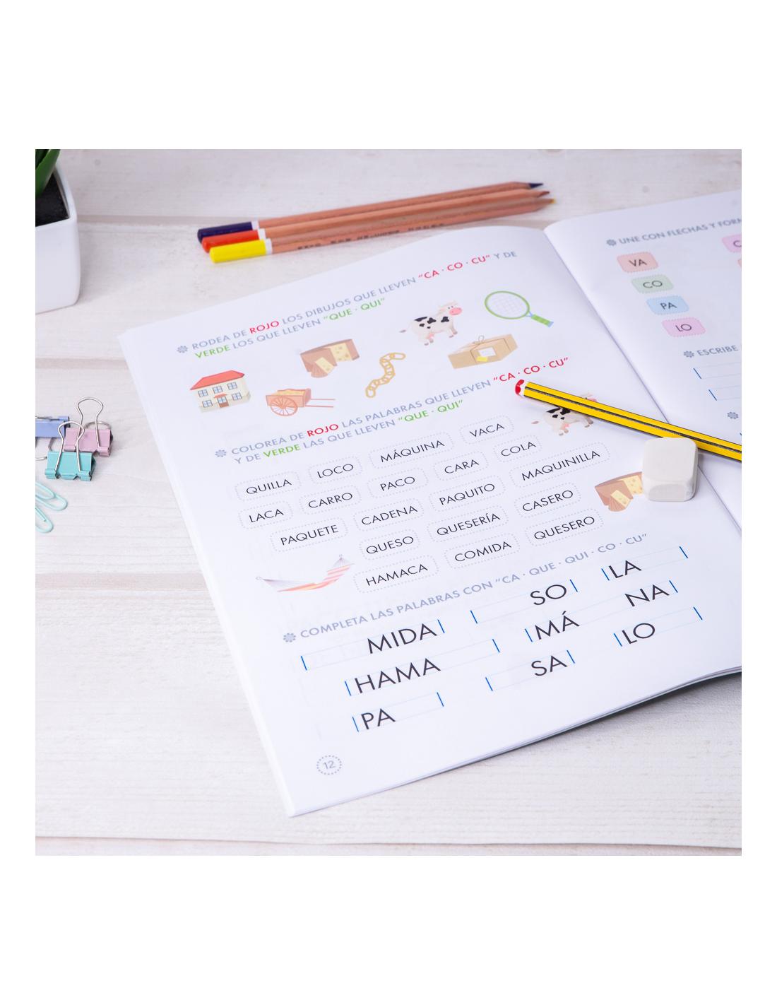 Este cuaderno no solo enseña a leer y escribir, sino que también mejora la comprensión lectora y amplía el vocabulario de los niños. Además, incluye pegatinas para hacer el aprendizaje aún más divertido. Tu hijo disfrutará aprendiendo a leer además de adquirir una base lingüística sólida.