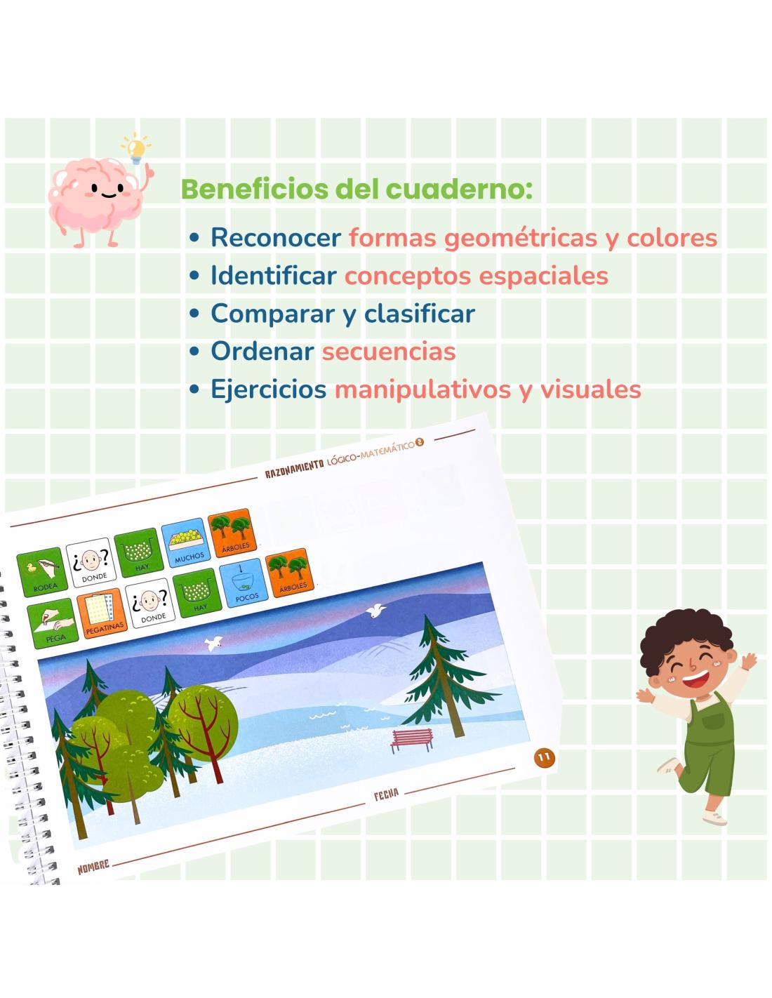 A través de actividades dinámicas y prácticas, los niños ampliarán su capacidad para comprender conceptos matemáticos básicos y resolver problemas de manera lógica. Este material educativo trabaja habilidades fundamentales como: