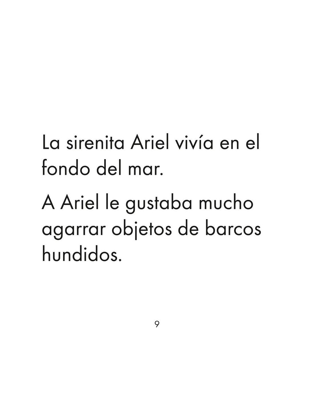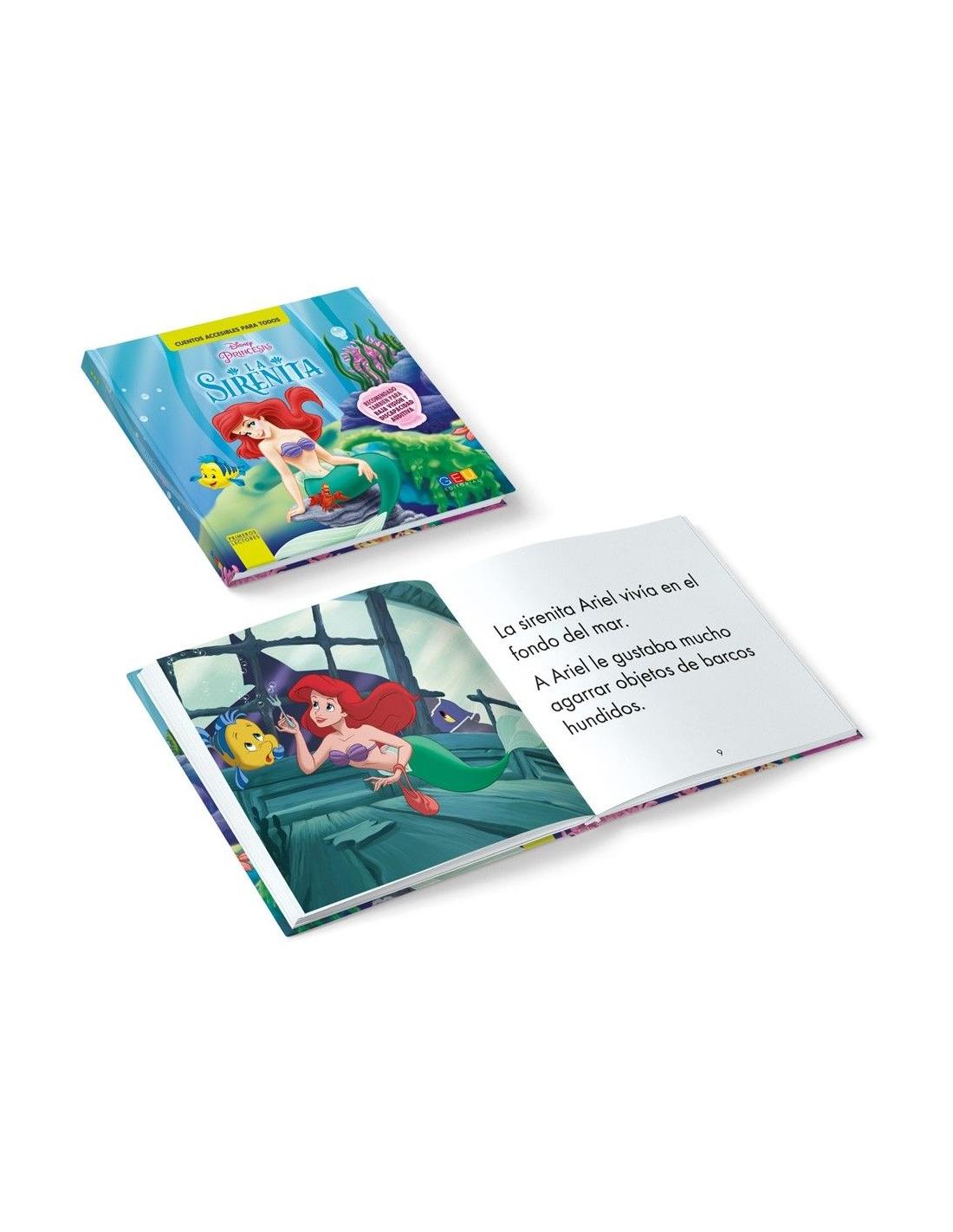 La Sirenita en lectura facilitada es una adaptación de la historia de Disney con vocabulario sencillo, textos cortos y estructura gramatical básica. Además, todos los textos se presentan en un tamaño de letra grande y tipo de letra script minúscula.