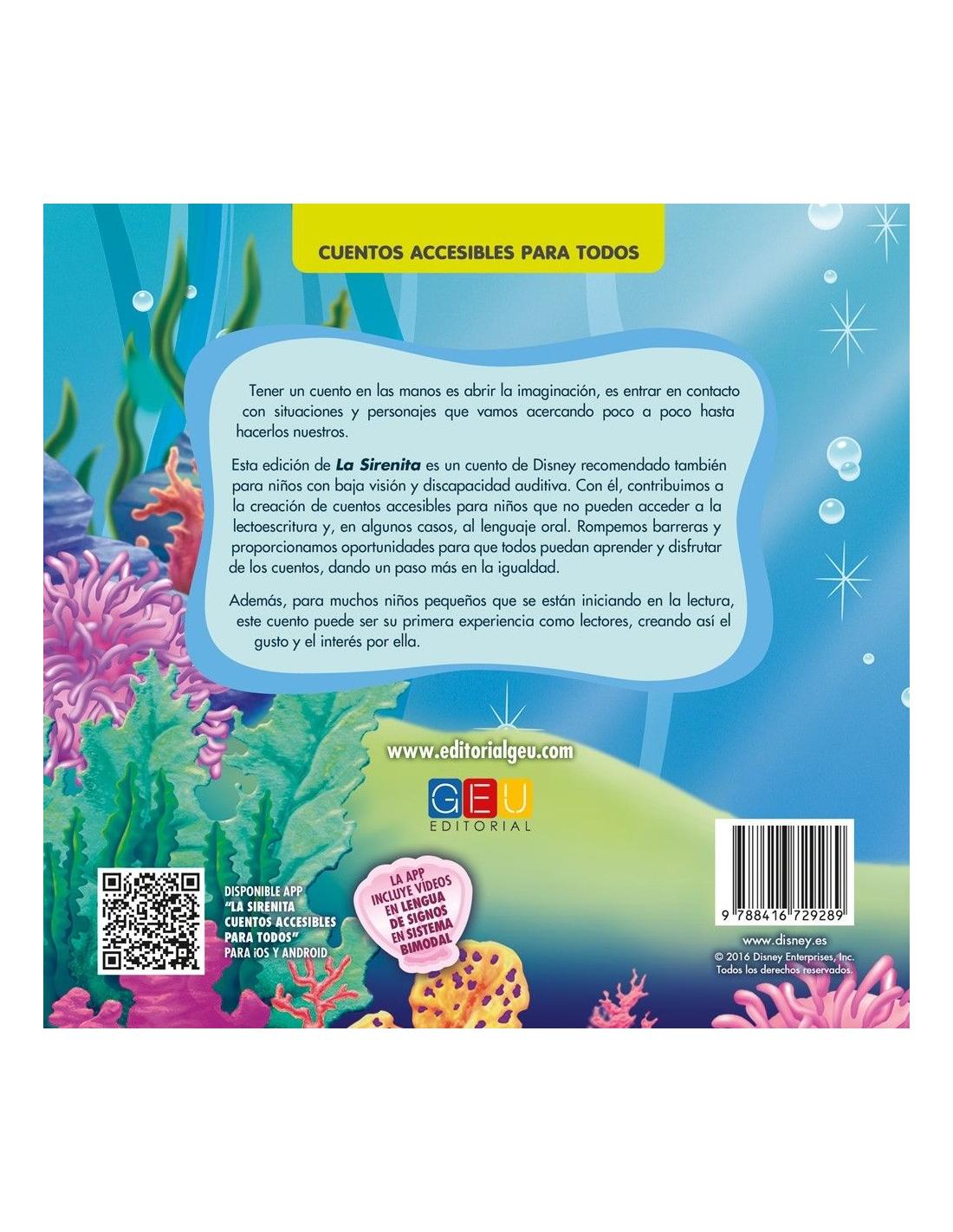 Incluye App gratuita "La Sirenita Cuentos Accesibles para Todos", con la que tendrás una nueva herramienta de comunicación aumentativa-alternativa gracias a la Lengua de Signos en Sistema Bimodal.