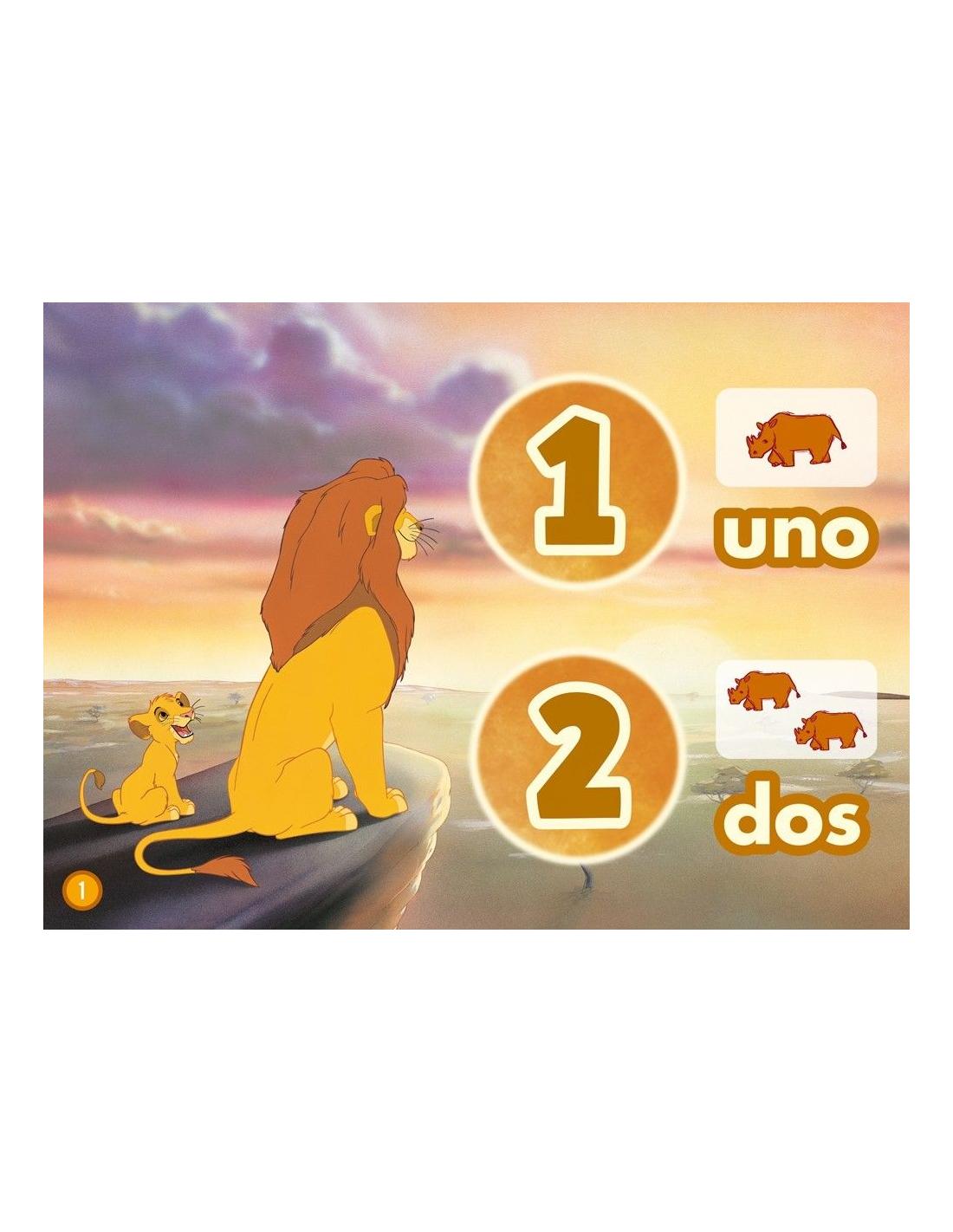 Gracias a los divertidos amigos de Simba, los niños y niñas podrán aprender sus primeros números de forma entretenida mediante el juego. Los personajes del clásico de Disney serán los acompañantes perfectos para que, con sencillos puzles, los niños puedan identificar cada cifra con su escritura correspondiente y conozcan la sucesión de los números del 1 al 10 de menor a mayor.