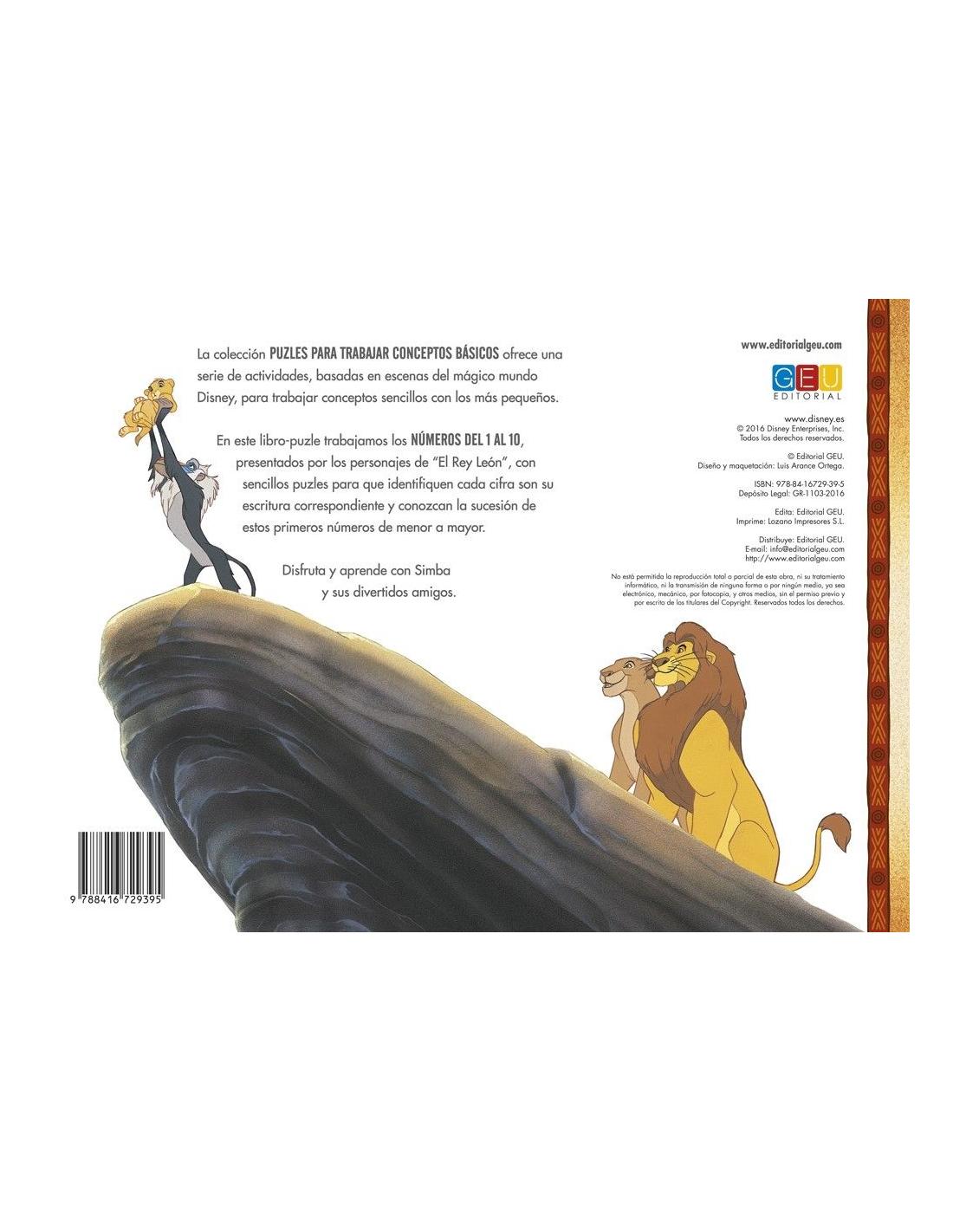 El Rey león - Libro-juego es un material diseñado para trabajar conceptos básicos, en concreto los números del 1 al 10. Se trata de un material diseñado en un práctico y cómodo formato con piezas de puzle para responder a las actividades propuestas.