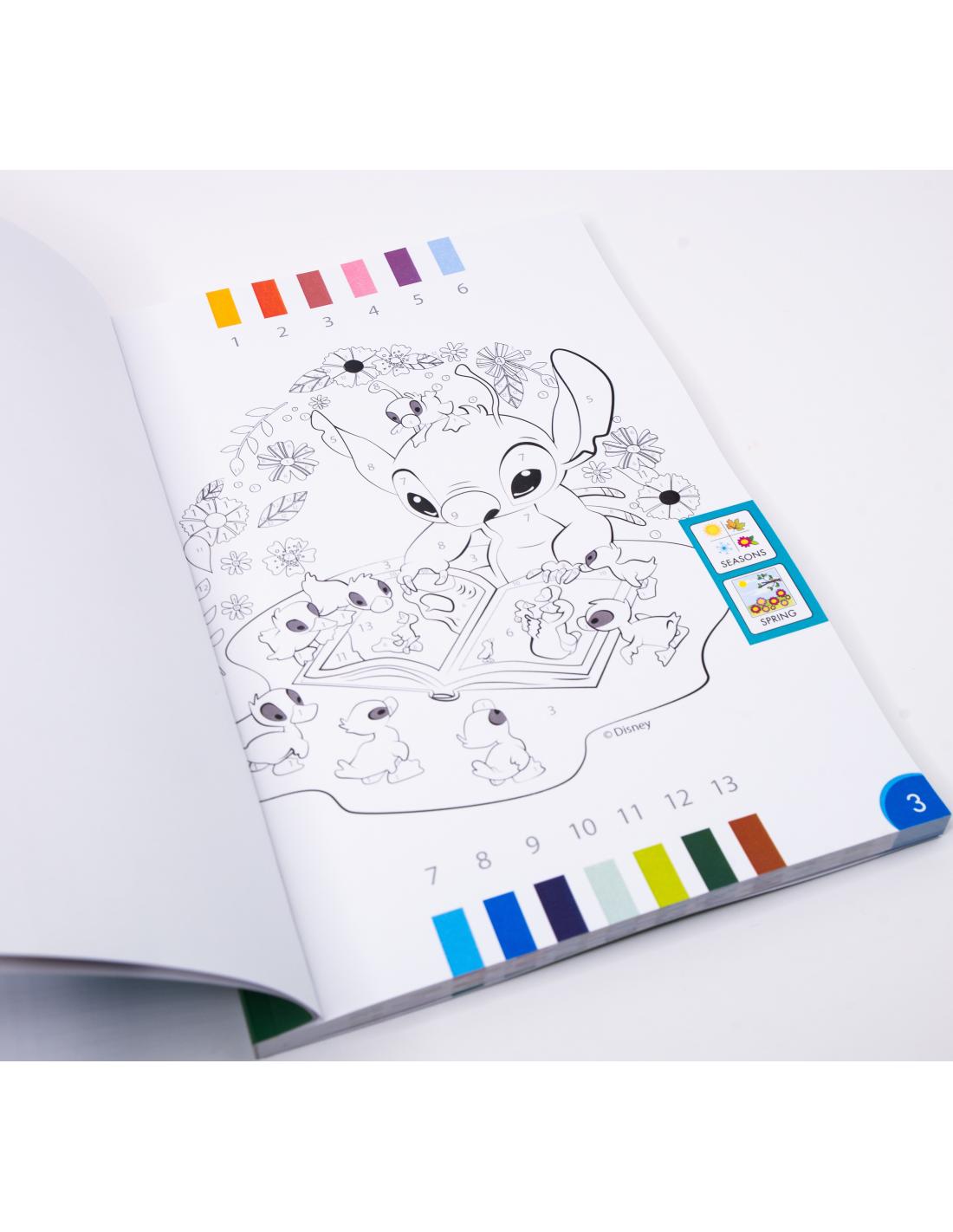 Sumérgete en el encanto de Stitch con esta edición en inglés de nuestro exclusivo material para experimentar la magia de colorear con patrones relajantes que te guiarán a través de la pintura por números.