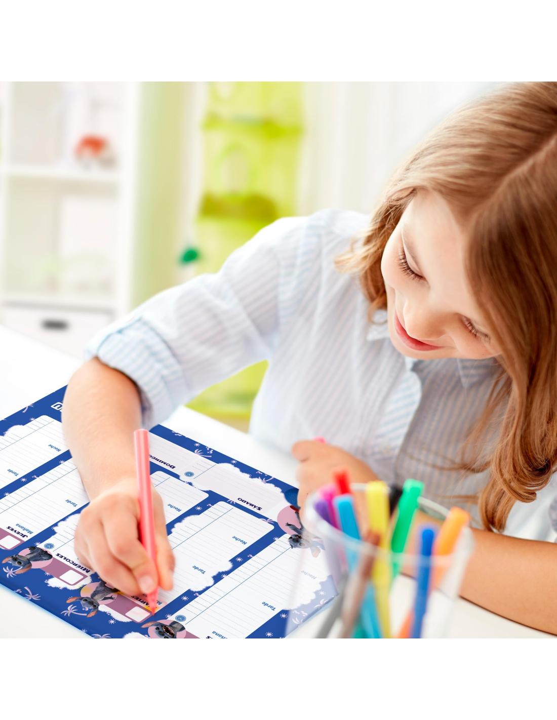 Este planning semanal sin fechas te permite organizar tareas, eventos y recordatorios fácilmente. Empieza cuando quieras y ten tu semana a la vista de un solo vistazo. Ideal como agenda escolar, planner de escritorio o organizador de estudios.