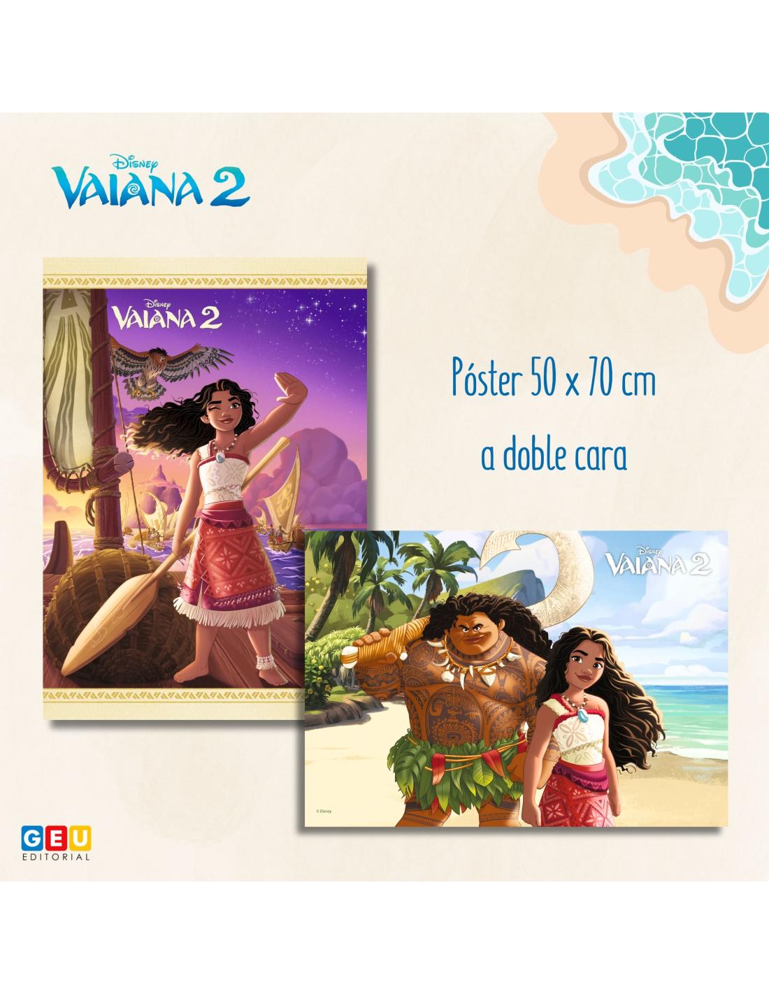 🌊 CONTENIDO DEL SOBRE - Incluye el cuento de Vaiana 2 adaptado para dislexia y un bonito póster de 50 x 70 cm a doble cara de Maui y Vaiana.