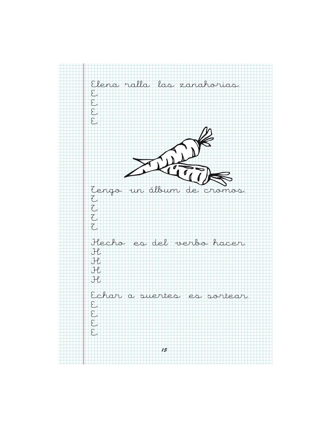 El proceso de aprendizaje de la lectoescritura consiste en diferentes aspectos. Uno de ellos hace referencia a la correcta realización del trazo para que el texto sea legible. La colección Caligrafía está formada por 23 cuadernos. Del cuaderno 1 al 9 la cuadrícula es de 4 mm. A partir del cuaderno 10 la cuadrícula es de 3 mm.