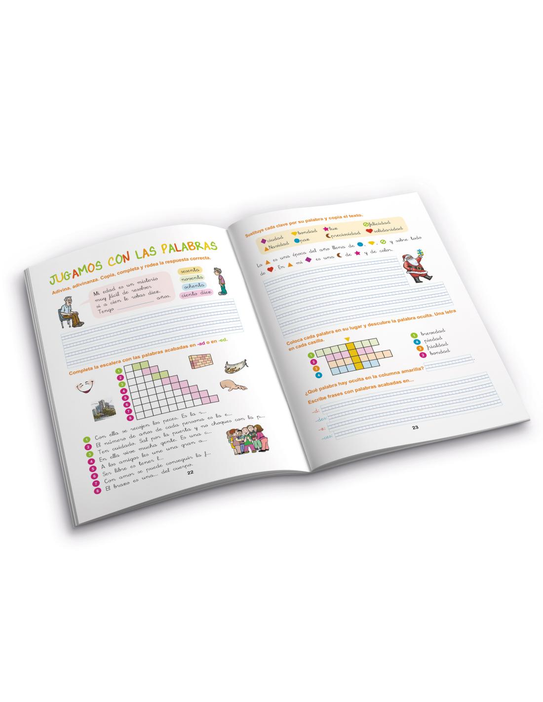 Los cuadernos 7, 8 y 9 proponen actividades amenas para reforzar los conocimientos de ortografía del nivel de 3º de Educación Primaria.