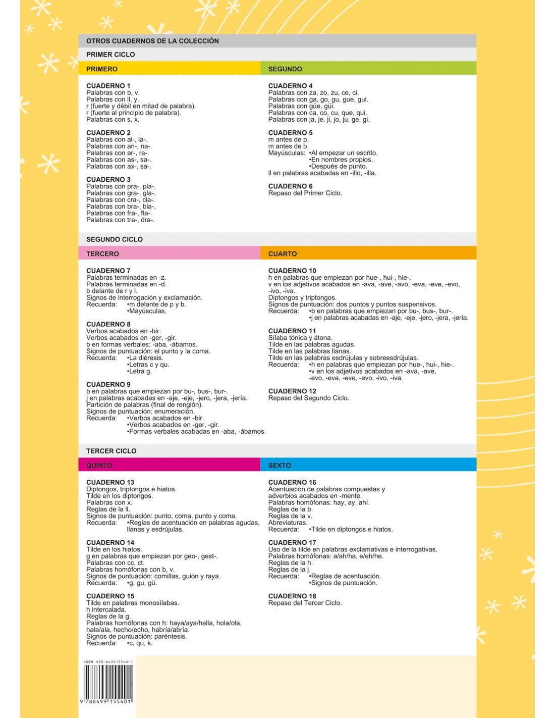 Ortografía divertida 7 forma parte de una colección compuesta por 19 cuadernos, de los cuales 3 se dirigen especialmente a mejorar la ortografía de 3º de Primaria.