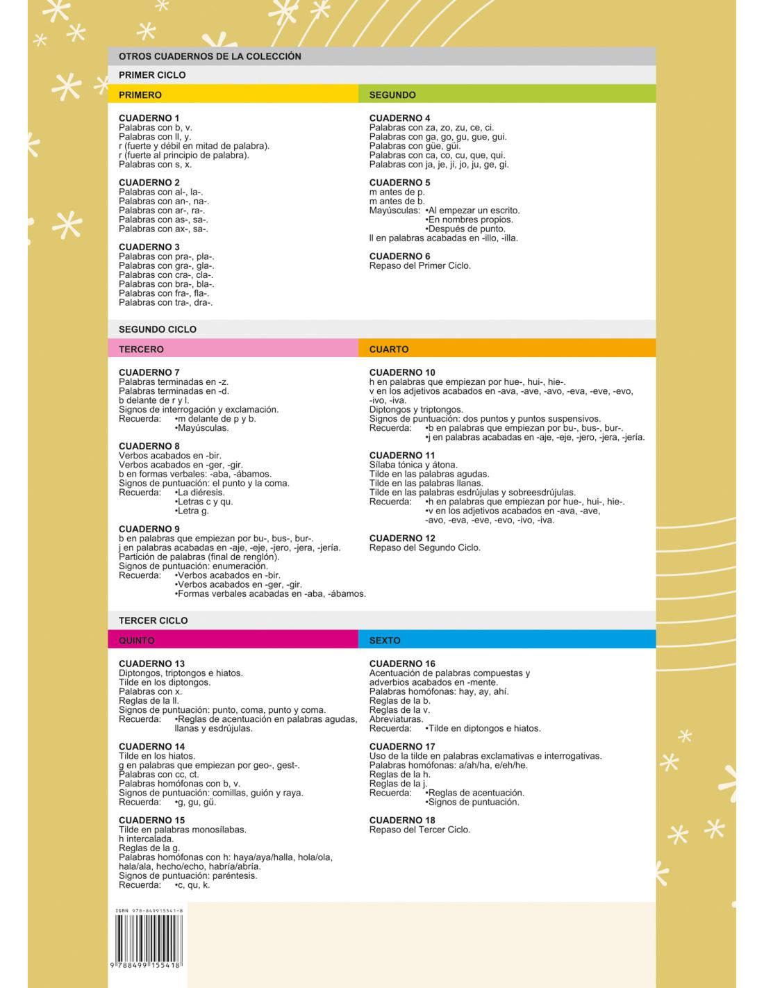 - Ortografía para 3º de Primaria – Cuaderno diseñado para niños y niñas de 8-9 años, ideal para reforzar las reglas básicas de ortografía de forma clara, progresiva y divertida.
