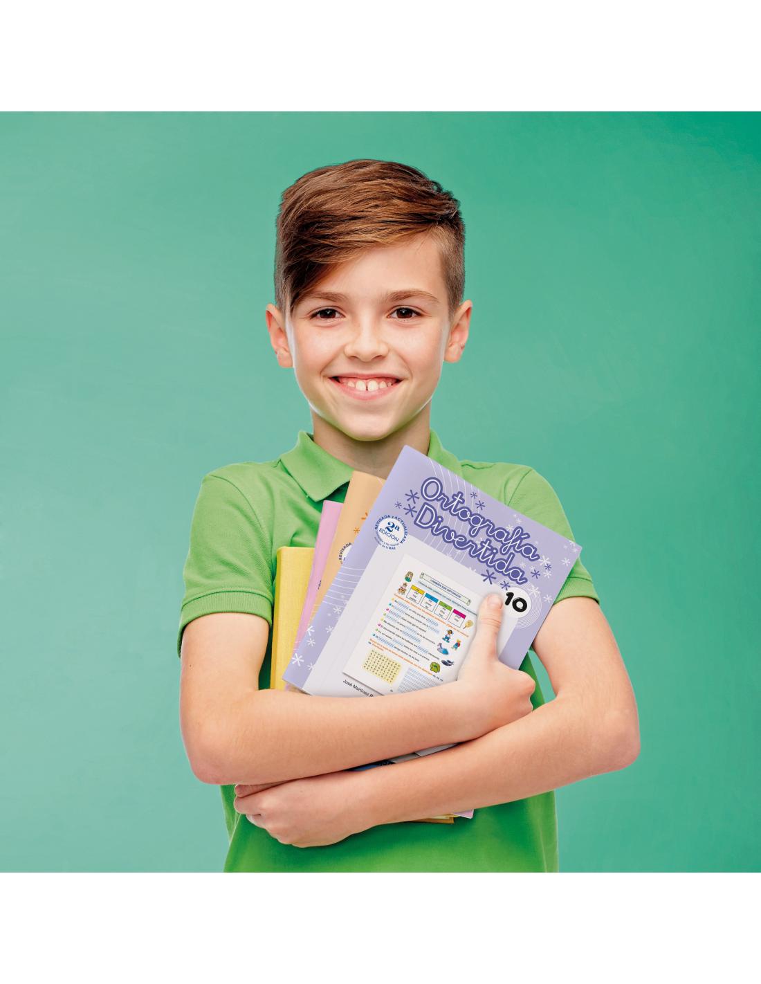 Ortografía Divertida 10 es un cuaderno didáctico diseñado para que niños y niñas de 9 a 10 años (4º de Educación Primaria) refuercen las reglas básicas de ortografía de manera divertida, autónoma y eficaz. Forma parte de una colección de 19 cuadernos que abordan progresivamente los principales contenidos ortográficos del currículo escolar.