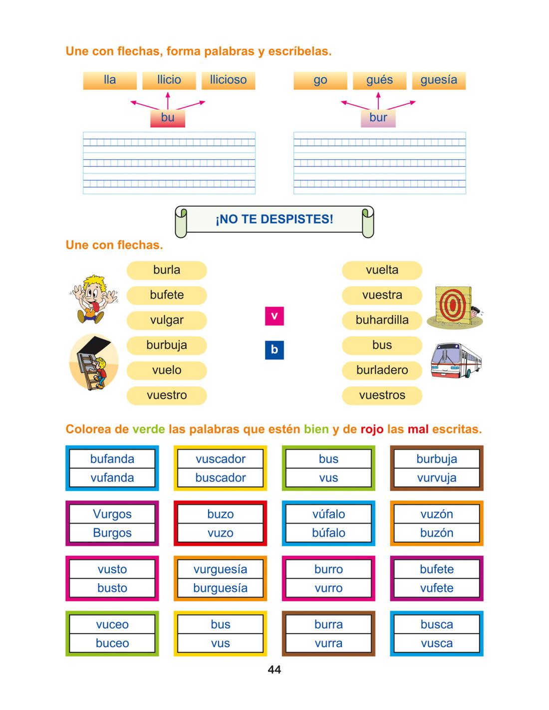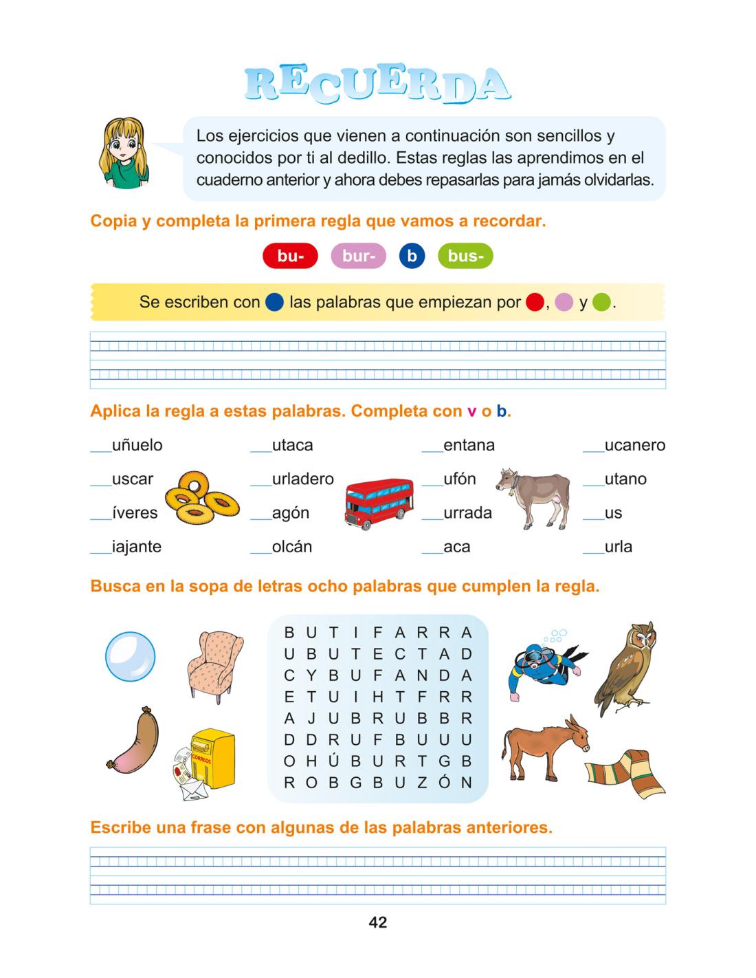 - Repaso de "b" en palabras que empiezan por bu–, bus–, bur–.