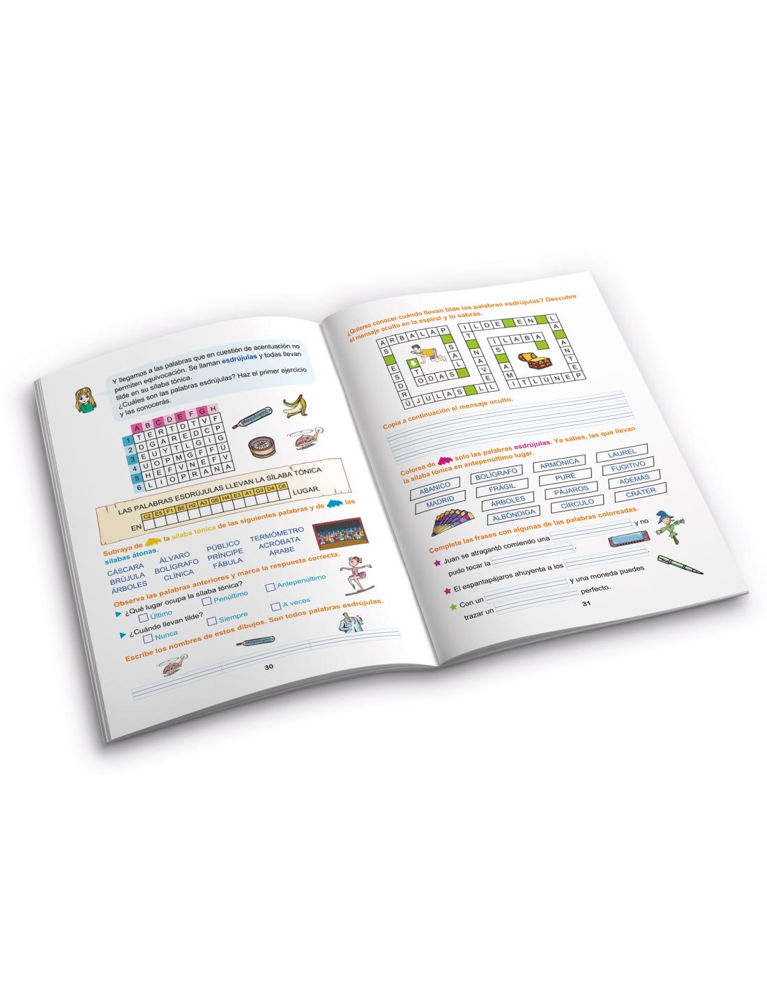 Orientado a 4º de Educación Primaria. Aplica una metodología activa e inductiva partiendo de actividades que trabajan ejemplos normativos concretos y cercanos al niño/a, siendo un perfecto apoyo para que trabajen con gran interés y de forma autónoma.
