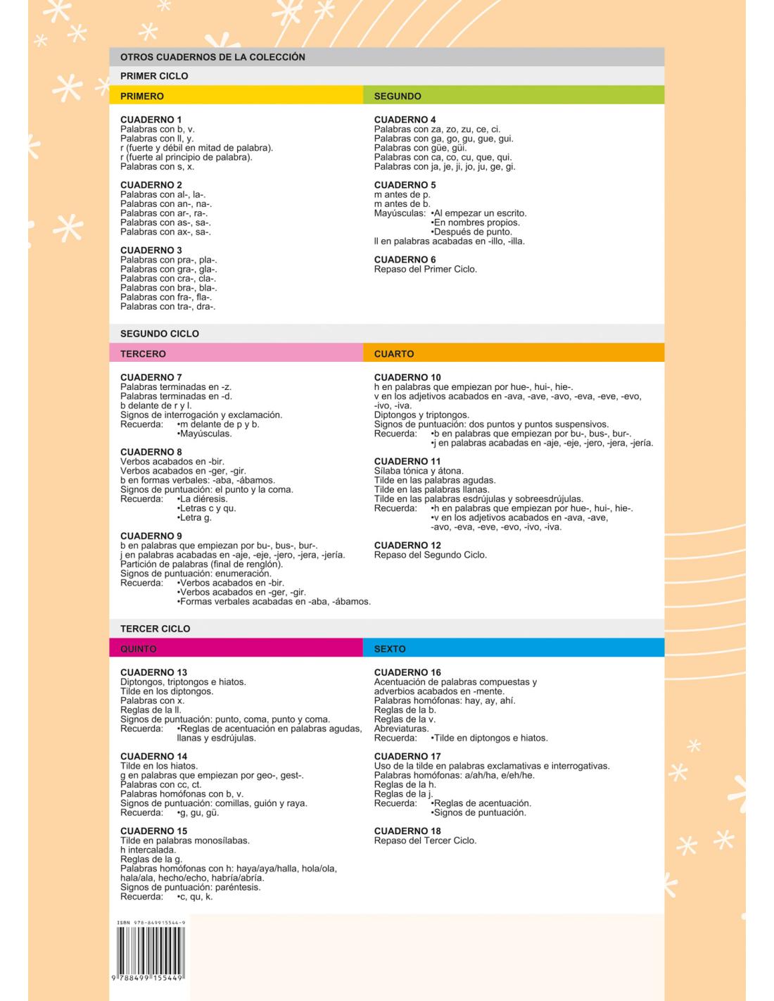 Ortografía divertida 11 forma parte de una colección compuesta por 19 cuadernos que trabajan jugando con las palabras, y enseñando las reglas de ortografía más importantes de una manera sencilla y divertida.