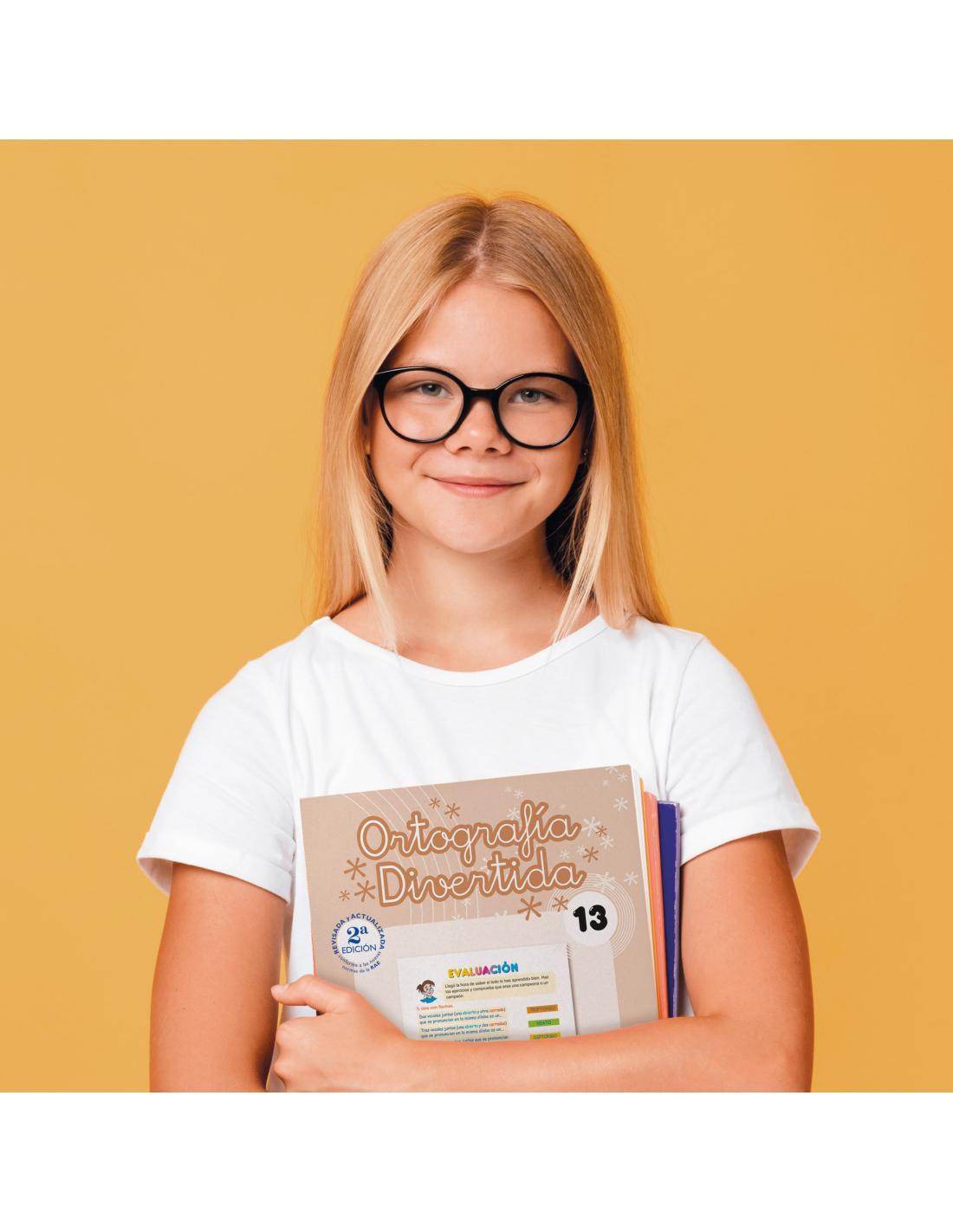 Ortografía Divertida 13 es un cuaderno didáctico diseñado para que niños y niñas de 10 a 11 años (5º de Educación Primaria) refuercen las reglas básicas de ortografía de manera divertida, autónoma y eficaz. Forma parte de una colección de 19 cuadernos que abordan progresivamente los principales contenidos ortográficos del currículo escolar.