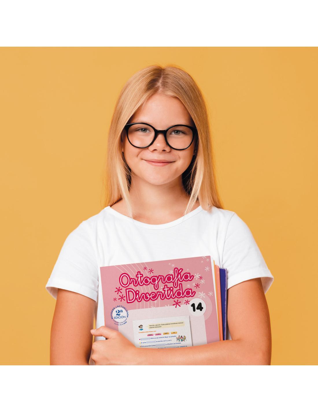 Ortografía Divertida 14 es un cuaderno didáctico diseñado para que niños y niñas de 10 a 11 años (5º de Educación Primaria) refuercen las reglas básicas de ortografía de manera divertida, autónoma y eficaz. Forma parte de una colección de 19 cuadernos que abordan progresivamente los principales contenidos ortográficos del currículo escolar.