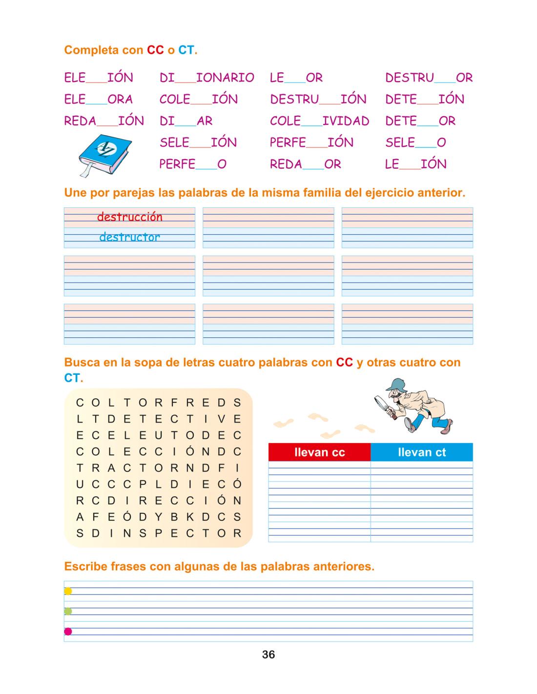 - Palabras con "cc" y "ct": aplicación de las reglas ortográficas correspondientes.
