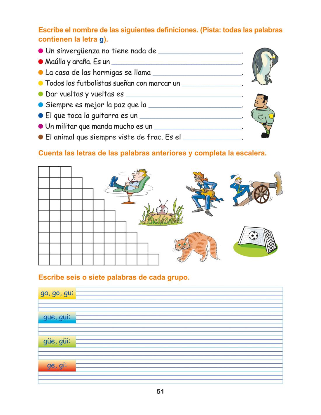 - Palabras que comienzan por "geo-", "gen-" y "gest-": reconocimiento y escritura adecuada.