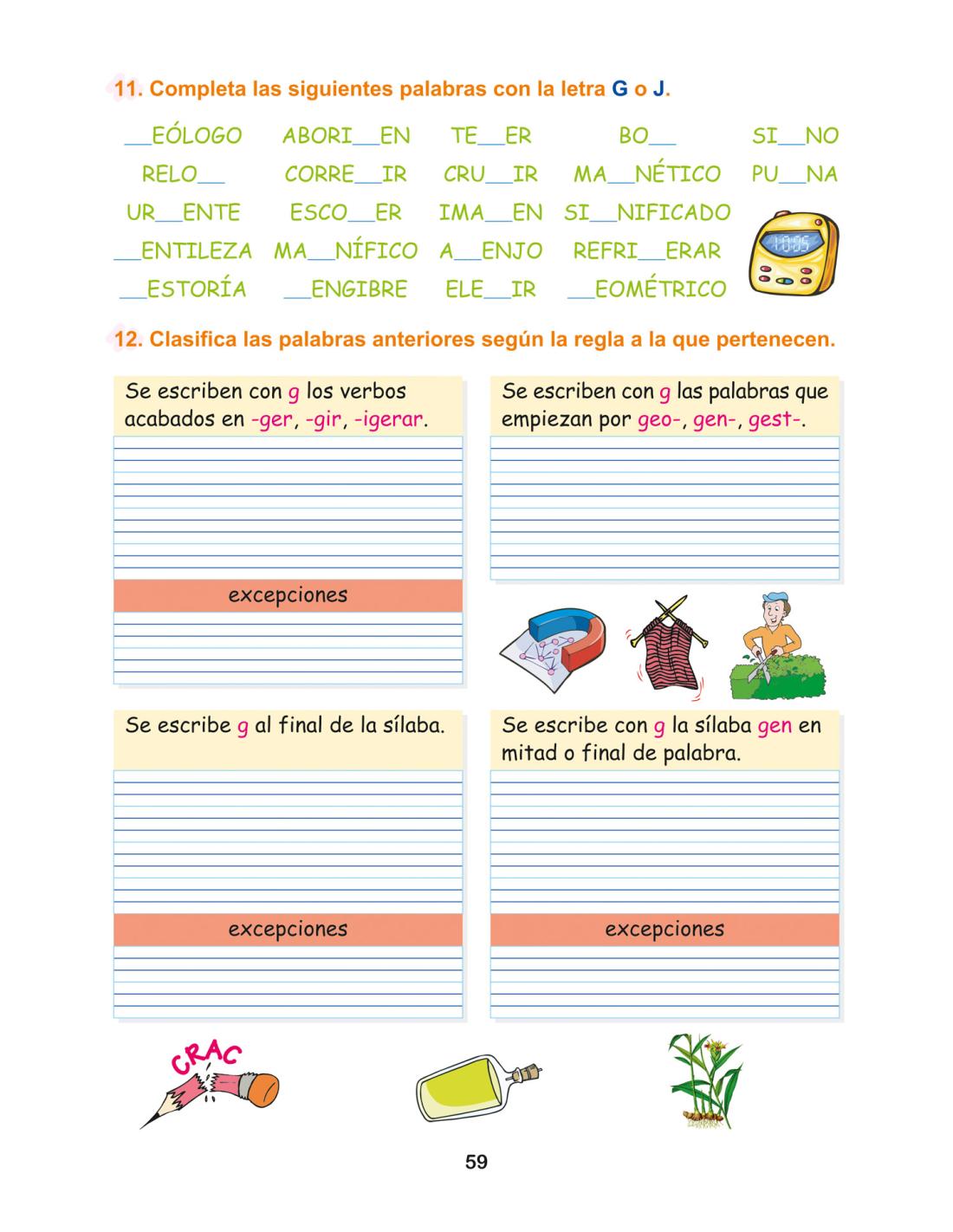 - Reglas de la "g": uso correcto en diferentes contextos.