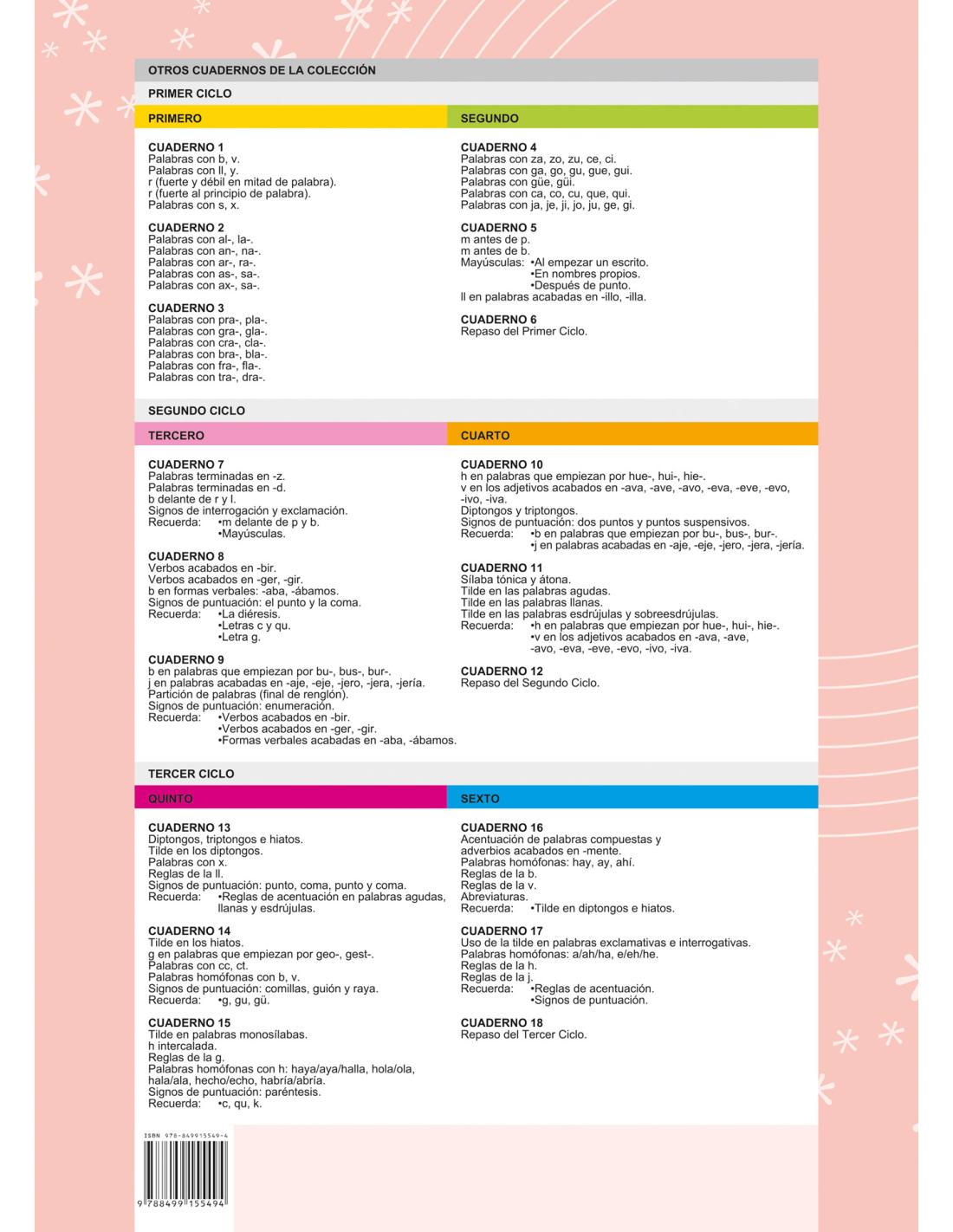 - Ortografía para 6º de Primaria – Cuaderno diseñado para niños y niñas de 11-12 años, ideal para reforzar las reglas básicas de ortografía de forma clara, progresiva y divertida.