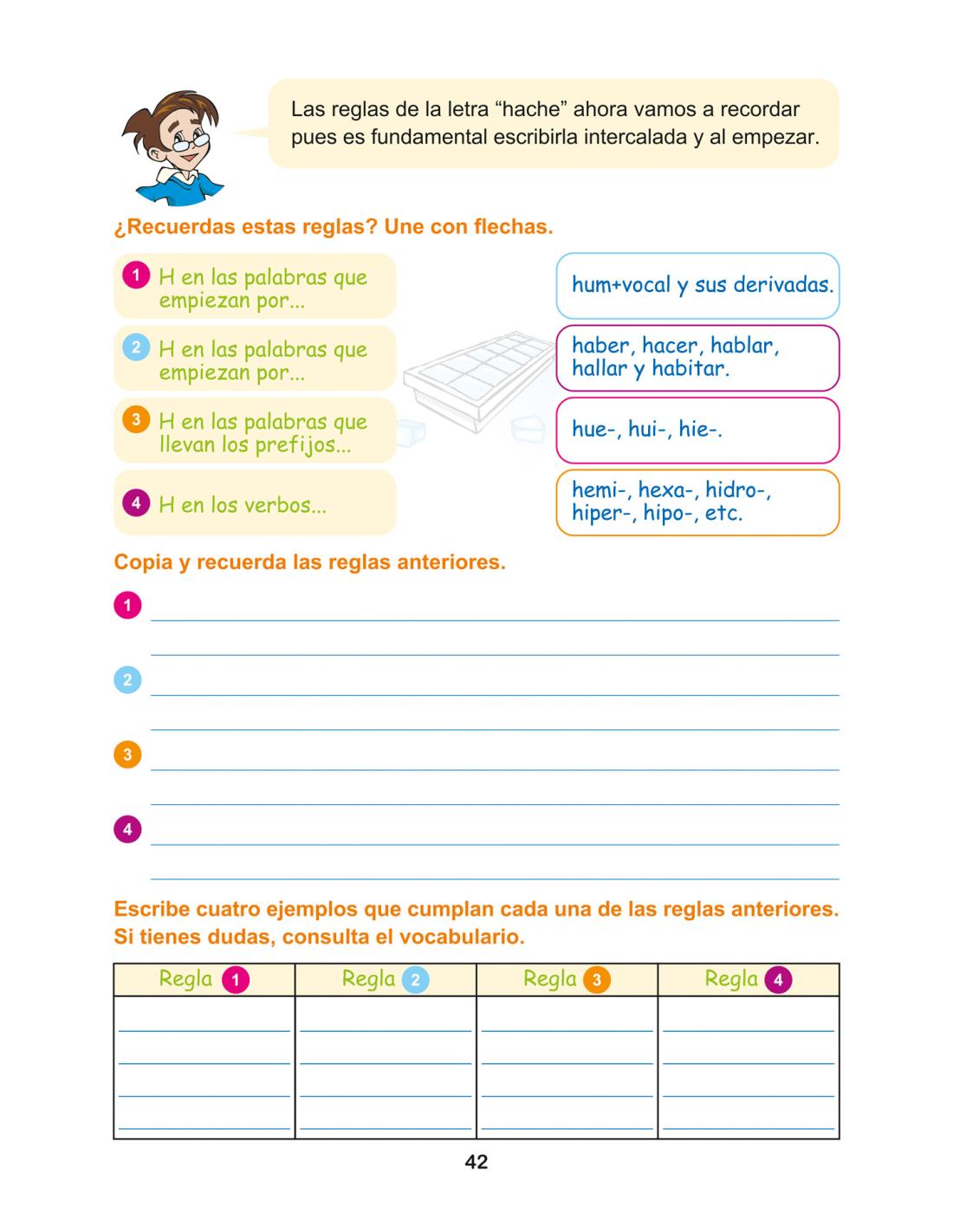 - Repaso del cuaderno 17: tilde en palabras interrogativas y exclamativas; palabras con especial dificultad; reglas de las letras h y j; palabras con la letra h intercalada; juegos con las reglas de las letras h y j.