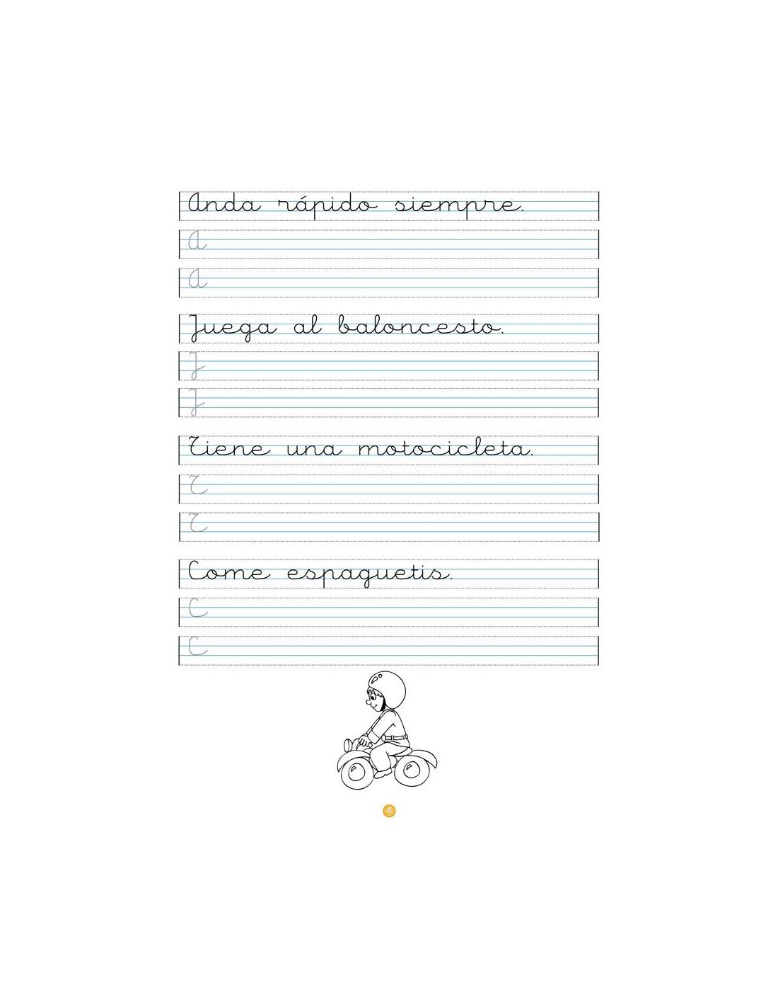 El proceso de aprendizaje de la lectoescritura consiste en diferentes aspectos. Uno de ellos hace referencia a la correcta realización del trazo para que el texto sea legible. La colección Caligrafía está formada por 20 cuadernos. Del cuaderno 1 al 5 la pauta es de 4 mm. A partir del cuaderno 6 la pauta es de 3 mm.