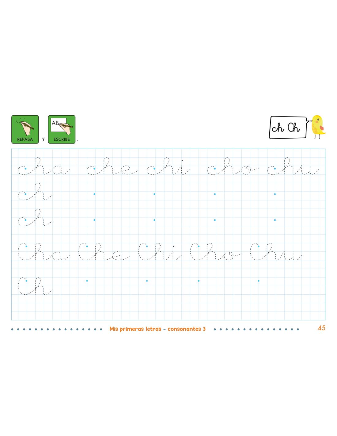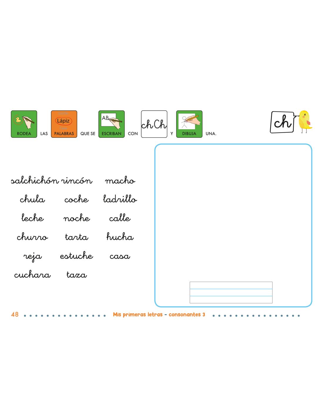 - ✅ Espacios para escribir letras, sílabas y palabras según modelo