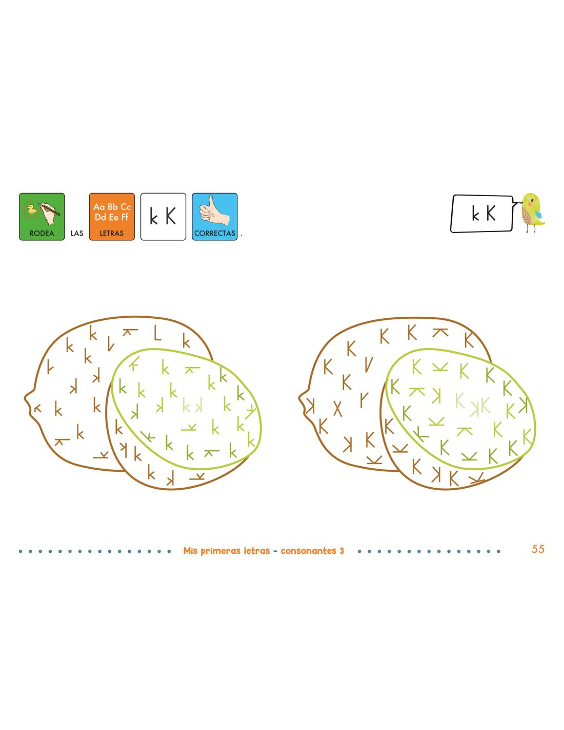 Este título forma parte de una colección de 6 cuadernos diseñada especialmente para niños y niñas de Educación Infantil. En esta tercera entrega se trabajan las consonantes f, h, ch, k, q, g, x y w, tanto en minúscula como en mayúscula, mediante actividades divertidas y variadas.