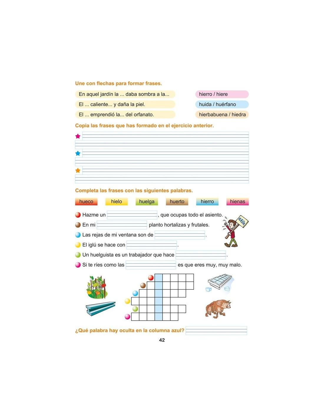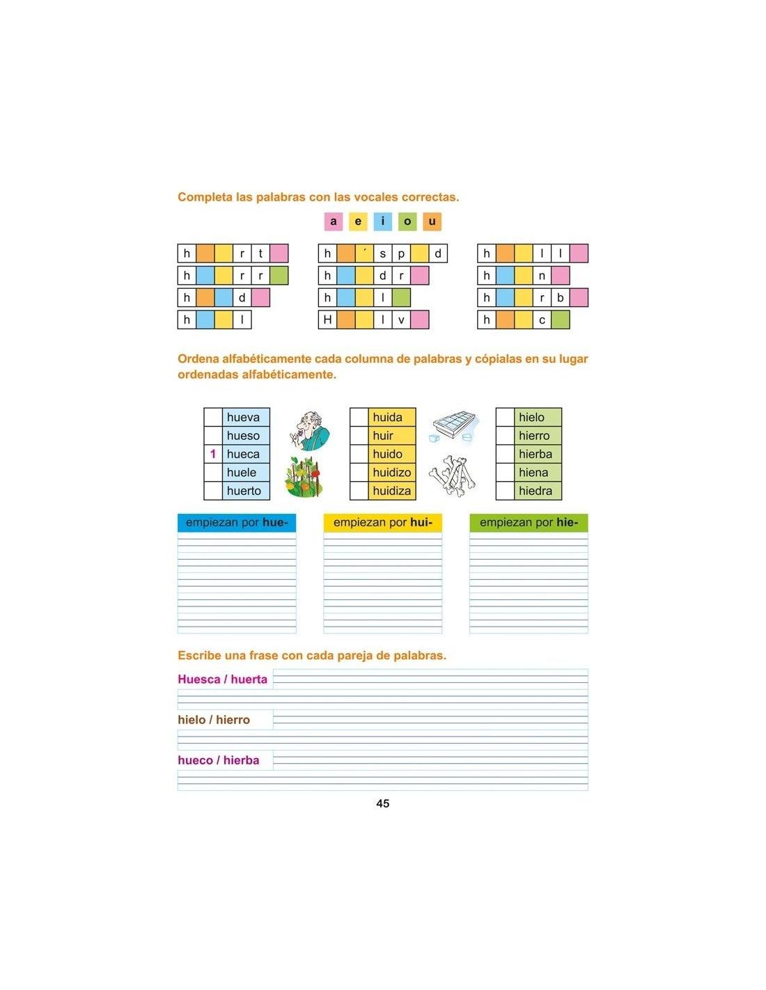 - Repaso de h–, en las palabras que empiezan por hue–, hui–, hie–.