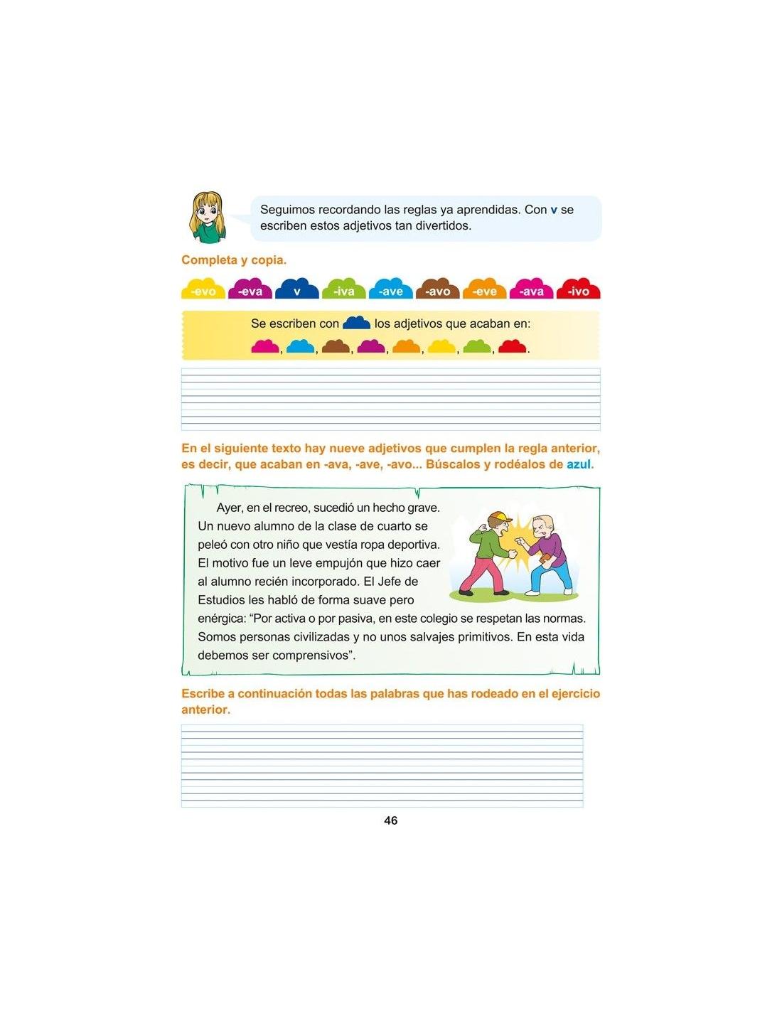 Orientado a 4º de Educación Primaria. Aplica una metodología activa e inductiva partiendo de actividades que trabajan ejemplos normativos concretos y cercanos al niño/a, siendo un perfecto apoyo para que trabajen con gran interés y de forma autónoma.