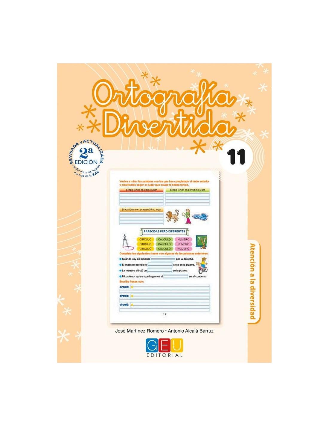 Ortografía divertida 11 forma parte de una colección compuesta por 19 cuadernos que trabajan jugando con las palabras, y enseñando las reglas de ortografía más importantes de una manera sencilla y divertida.